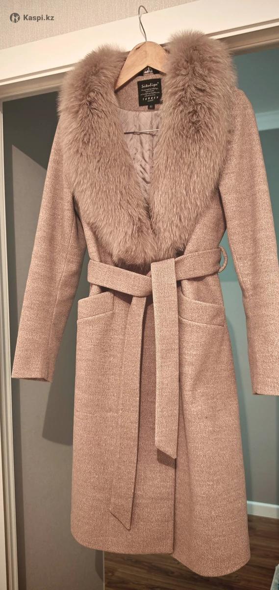 СРОЧНО! Состав шерсть , очень теплое , стильное. Состояние хорошее. Размер М. Воротник меховой снимается, есть пояс.Покупали за 120 к