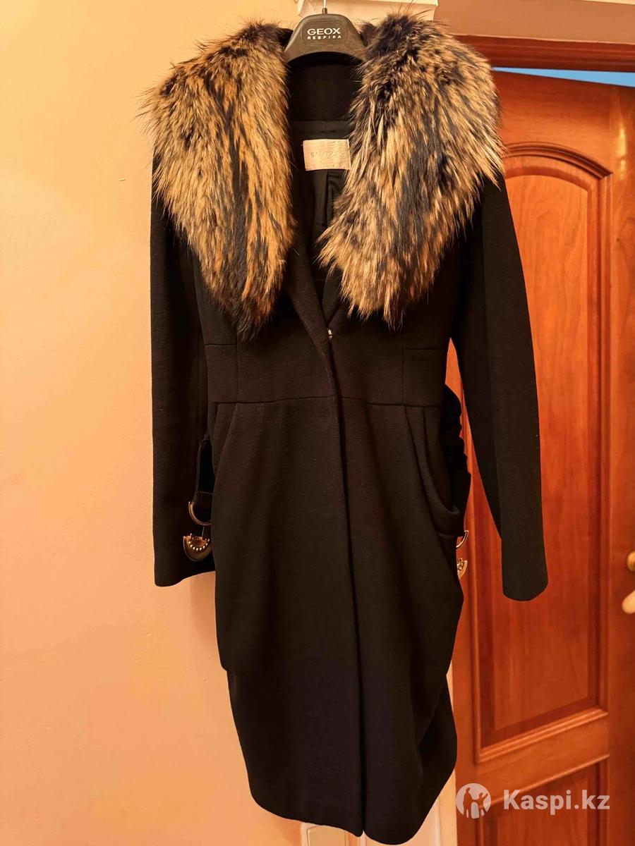 Дорогое пальто из натуральной шерсти и меха, воротник-мех съемный, имеется пояс тоже съемный.