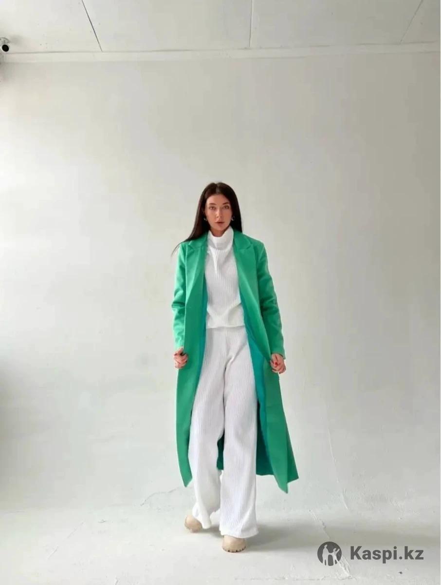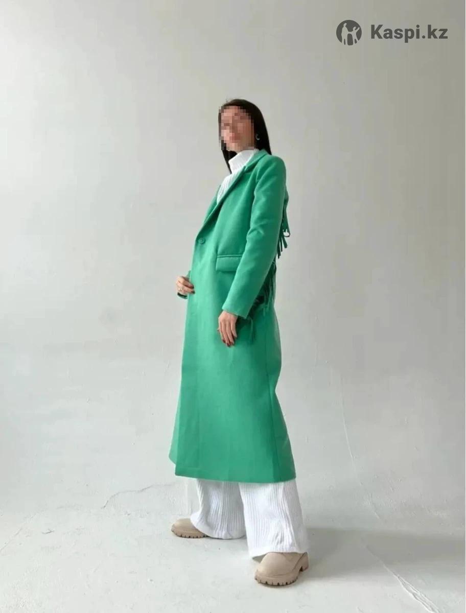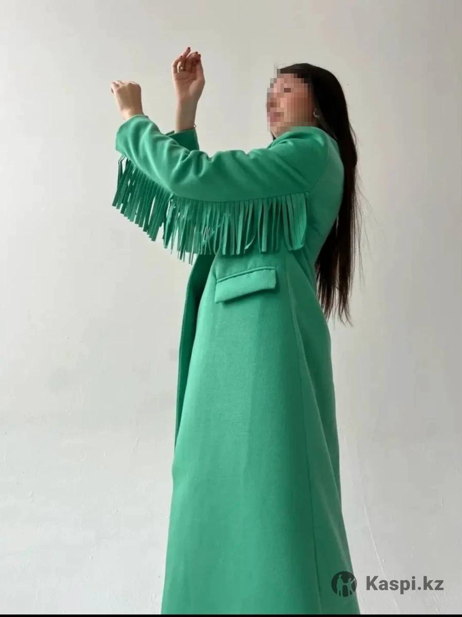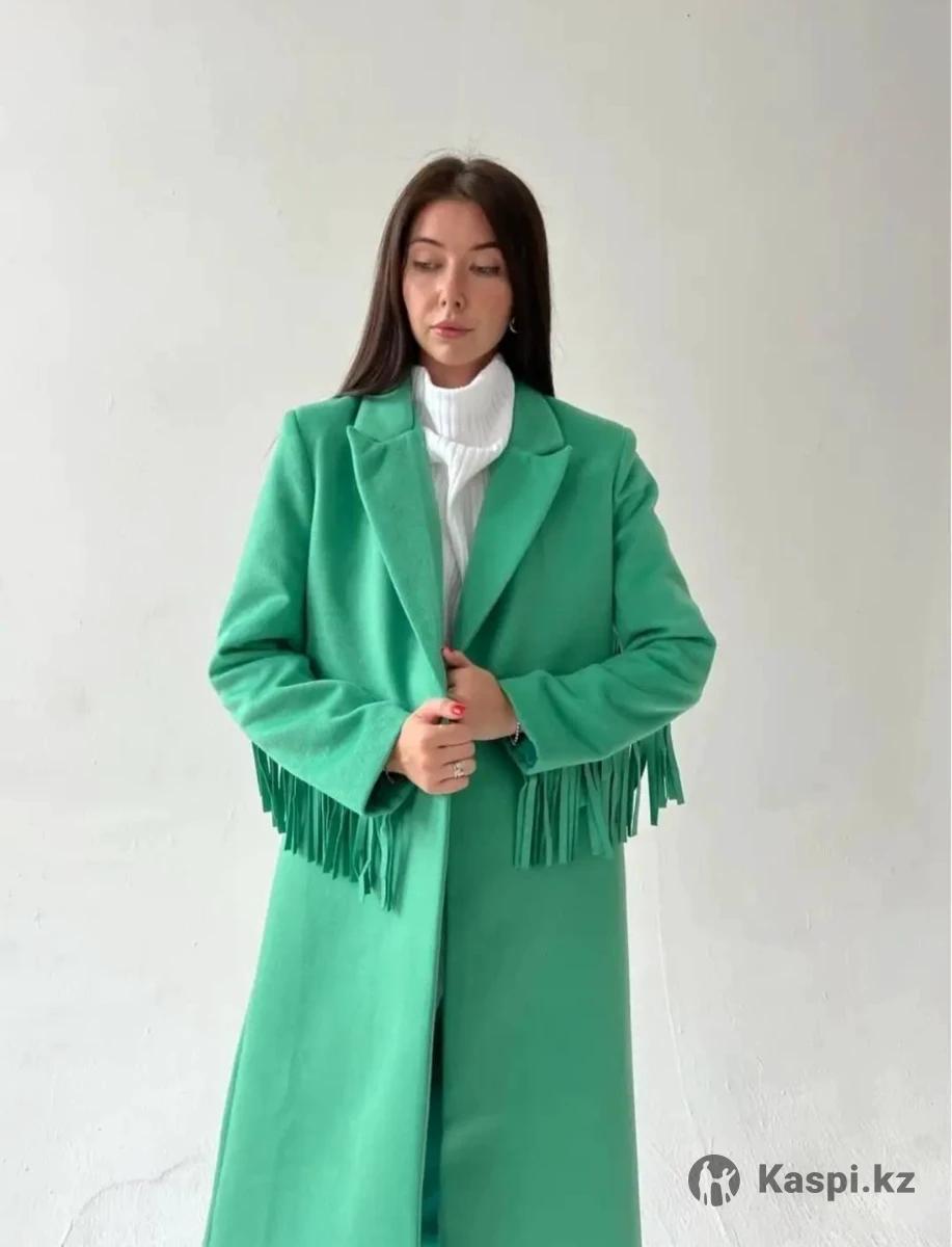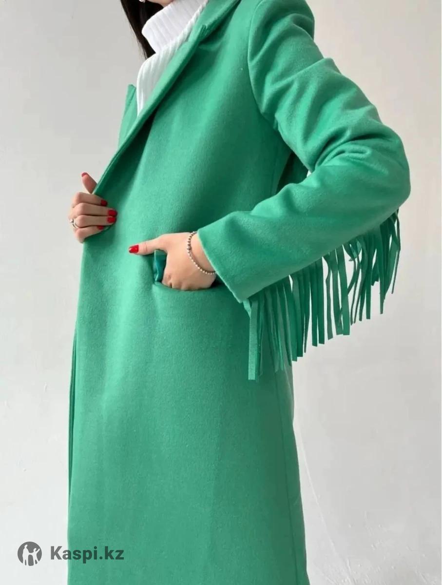 Пальто необычное с бахромой в зеленом цвете