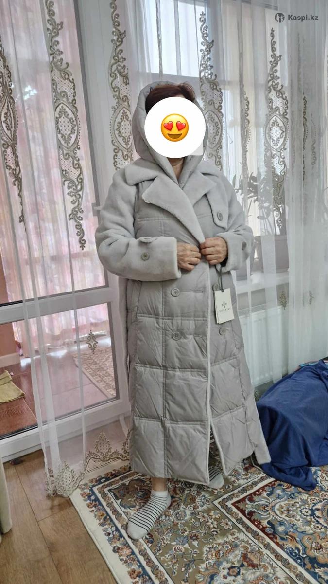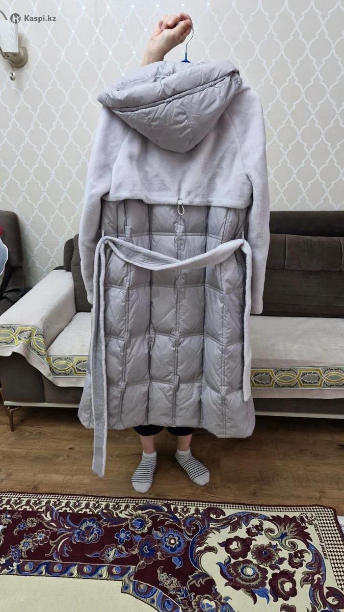 Зимнее солидное пальто в цвете «колотый лед», капюшон снимается, очень теплое и легкое в носке