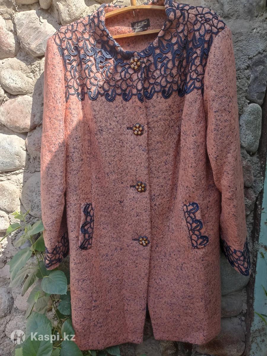 Пальто демисезонное производства Ю. Кореи на статную женщину. Размер 56-58. Длина 105 см, длина рукава 68 см. Состав ткани полностью натуральный (шерсть и вискоза). Пальто украшено шитьем, пуговицы - искусственными кристаллами. Просьба писать в чат или в мессенджер, по телефону не звонить.