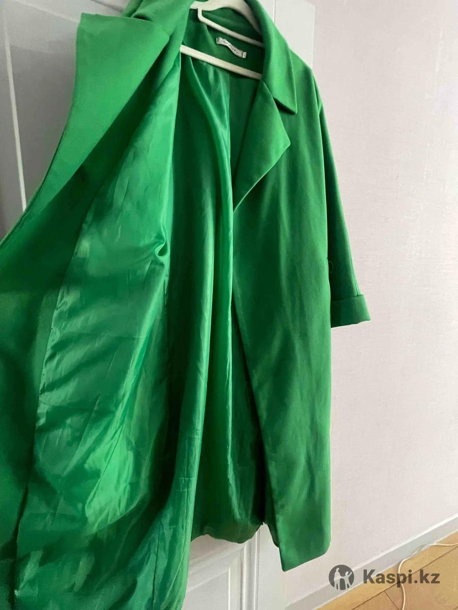 Продам пальто осень весна, с поясом, длинный, размер 44 ( примерно L, XL), или для тех кто любит оверсайз, надо мерить, цвет ярко зеленый, самовывоз, район АДК