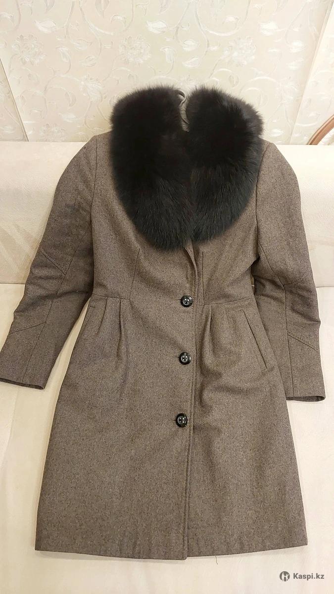 Пальто шерстяное с воротником песец