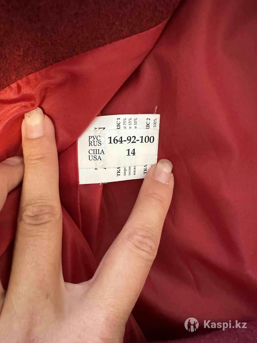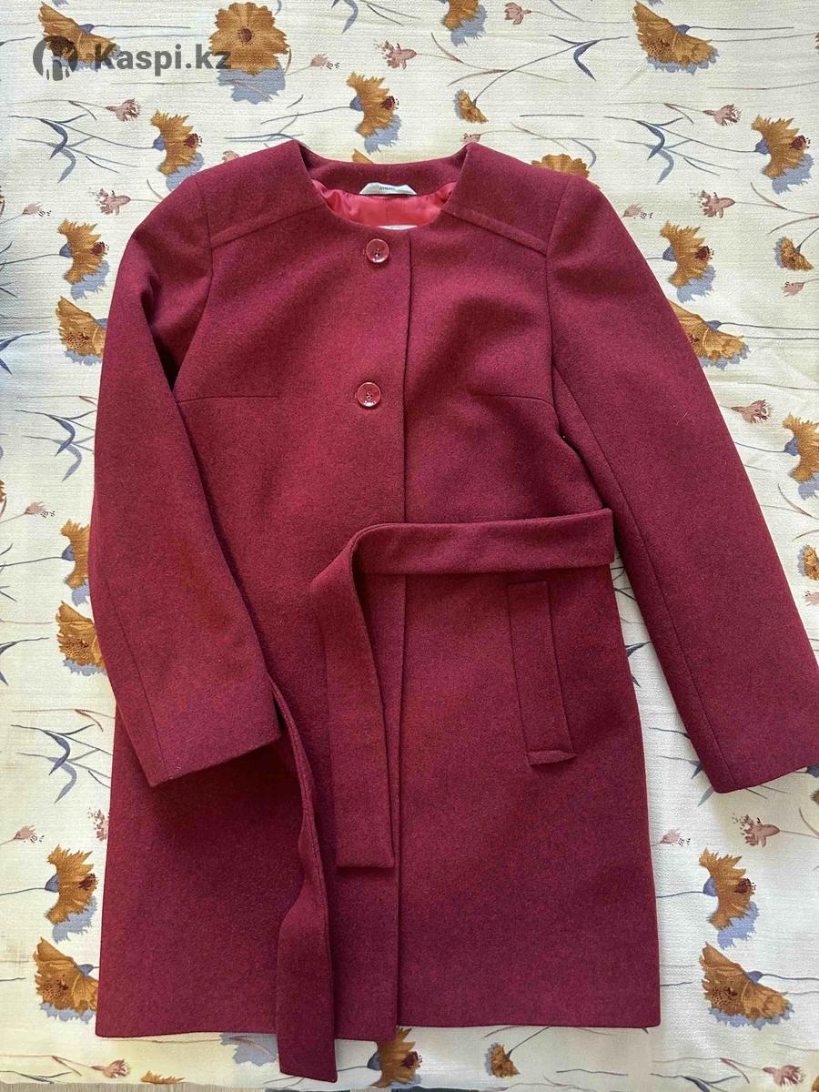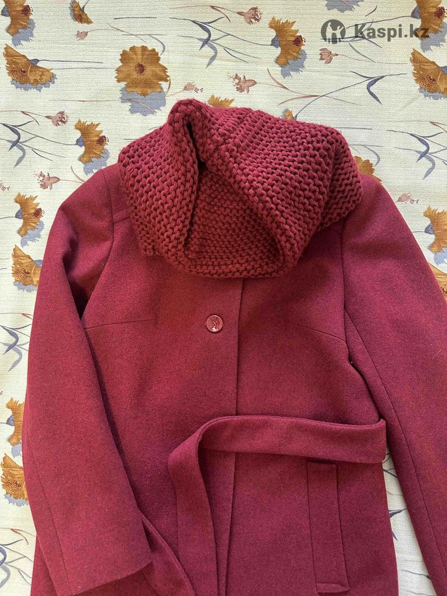 Пальто шерстяное со съемным вязаным шарфом- снудом Рр 46-48 Шерсть 75% Цвет бордовый Фасон прямой В идеальном состоянии