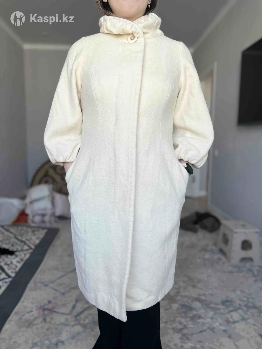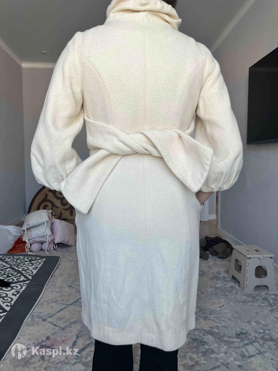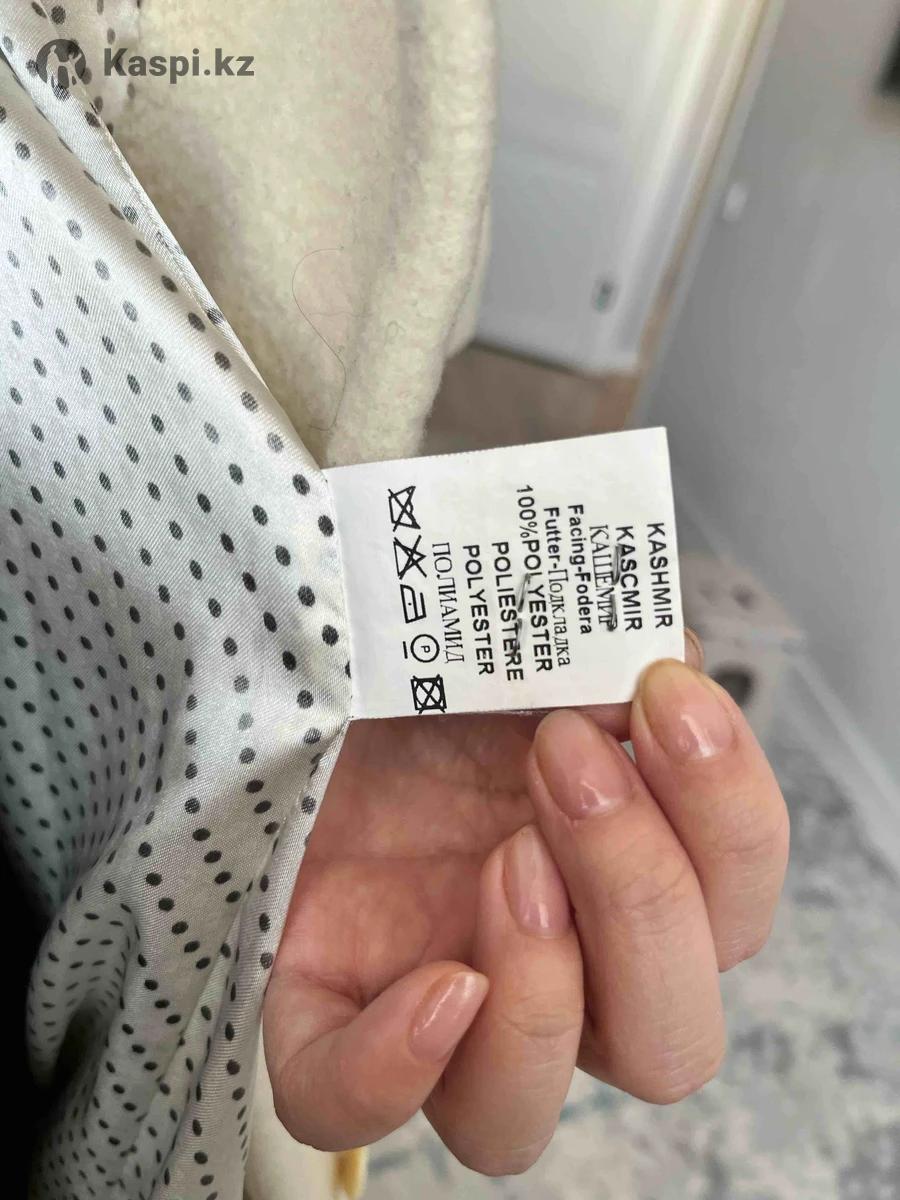 Пальто Бежевое Сезон: весна Состав: кашемир, шерсть, полиэстер Короткие рукава Капюшона Есть пояс