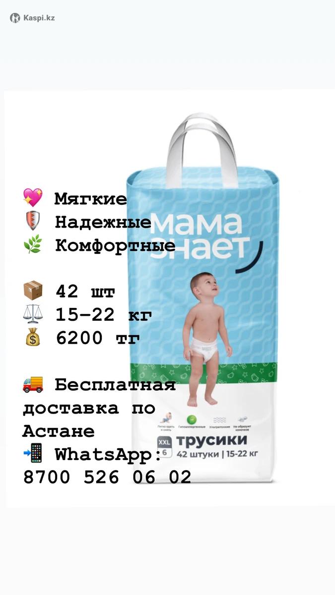 Мама знает ЖАННА НОВИНКА Мама знает трусики (XXL) 👶 Мягко • надежно • комфортно 📦 42 шт. ⚖️ 15–22 кг 💰 6 200 тг 🚚 Бесплатная доставка по Астане 📞