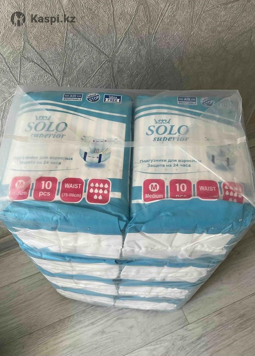 Подгузники для взрослых SOLO superior М (2)размер, в упаковке 10 шт. Уровень впитываемости: 10 капель. Успейте приобрести по оптовой цене. Оптом упаковка по 1000 тг, если приобретаете больше 10 шт. В 1 упаковке 10 шт. В розницу упаковка 1200тг.