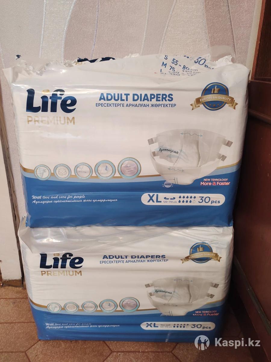 Памперсы Life premium для взрослых xl(максимальный размер). Одна упаковка полная 30шт - 10000тн, во второй 25шт - 8400тн).