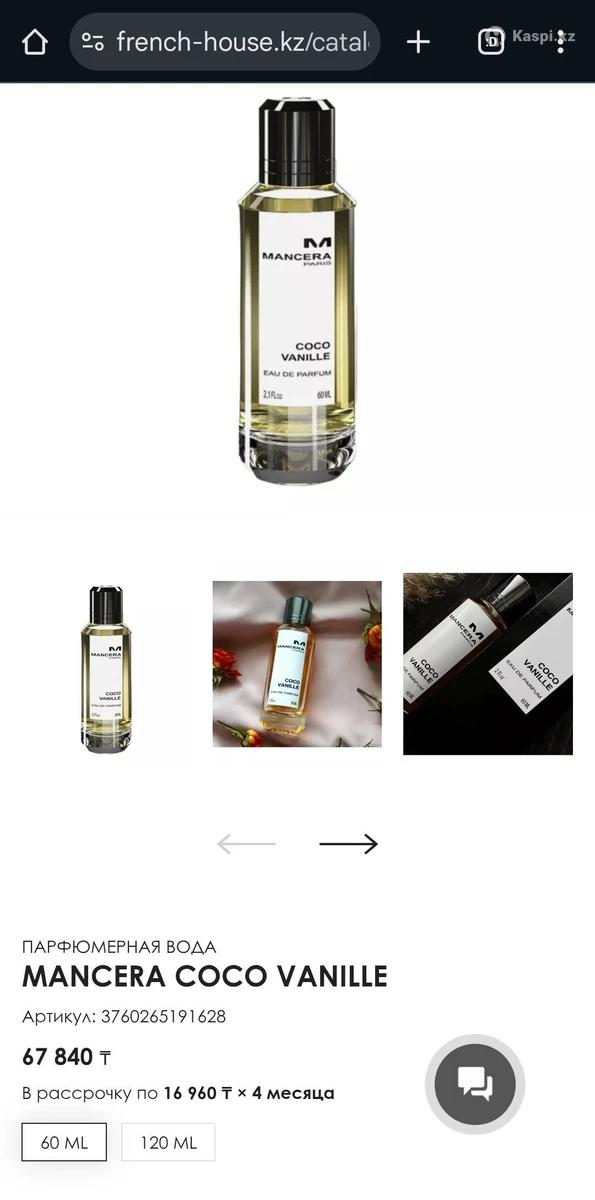 Продам Парфюм Mancera Coco Vanille, 60ml оригинал. Приобретала в Хан шатыре магазине Beauty Beautymania (French House). Практически не тронут. Продажа по причине того, что перепутала аромат. Приобрела не тот. Аромат очень стойкий. Яркая композиция, напоминающая ароматическое путешествие. В композиции необычное молочное звучание кокоса и ванили встречается с букетом солнечного иланг-иланга, таитянской гардении и нежного египетского жасмина. Благородное звучание древесных нот сандала и гуаяка оттеняются мягкой и чувственной мадагаскарской ванилью и белоснежного мускуса. Верхние ноты: кокос и белый персик Средние ноты: жасмин, иланг-иланг и тиаре Базовые ноты: белый мускус, древесные ноты и мадагаскарская ваниль.