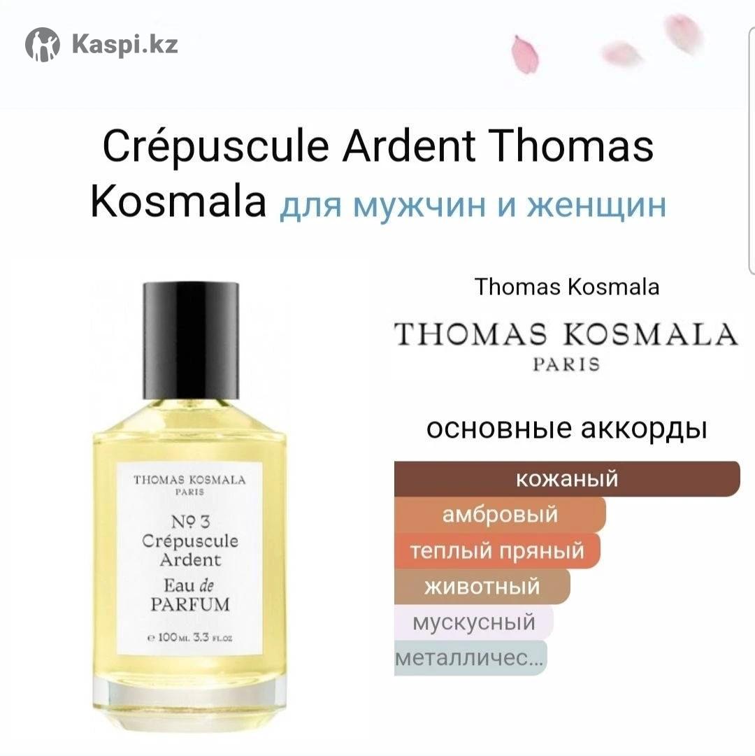 Остаток примерно 70 мл Отдаю по себестоимости, с учетом оставшегося объема. Заказывал в Европе. Стойкий и шлейфовый кожаный аромат. Торга нет. Обмена нет. Доставка за счет покупателя: Алматы курьером, либо СДЭК по Казахстану Бренд Thomas Kosmala Пол Верхние ноты Шафран Средние ноты Жасмин, Ладан Базовые ноты Амбра, Кожа, Замша Страна Франция No 3 Crepuscule Ardent — нишевая парфюмерная вода с кожаным ароматом для женщин и мужчин, созданная в 2018 году парфюмерным брендом элитной парфюмерии Thomas Kosmala из Франции. Магический и таинственный аромат «устанавливает дымную туманность красно-золотого шафрана, чтобы тлеть в курильнице, в то время как служитель храма вплетает цветы жасмина в наши волосы». Теплые пряные солнечные ноты драгоценного шафрана открывают аромат, наполняясь в «сердце» парфюмерной композиции интенсивным сладким запахом белых цветков жасмина и дымного древесно-бальзамического аккорда ладана. Отголоски сладкого аромата дразнят, усиливая ощущение страсти бархатистыми сексуальными акцентами замши и освежая тонким ароматом амбры в шлейфовых нотах неповторимой уникальной композиции.