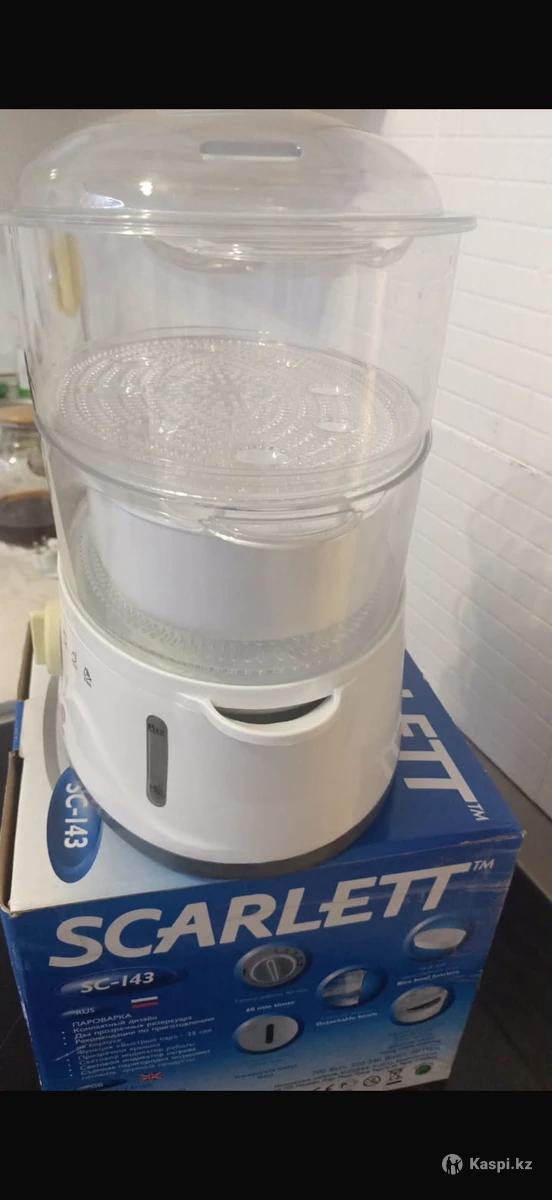 Scarlett SC-143 — двухъярусная пароварка с механическим управлением, двумя прозрачными корзинами и чашей для приготовления риса. Есть таймер автоотключения, индикатор уровня воды, функция быстрого нагрева и возможность долива воды во время готовки. Прозрачная крышка позволяет видеть процесс приготовления. Можно компактно собрать - один ярус входит в другой, много места не занимает. Состояние отличное. Цена 7 тыс (торг уместен)