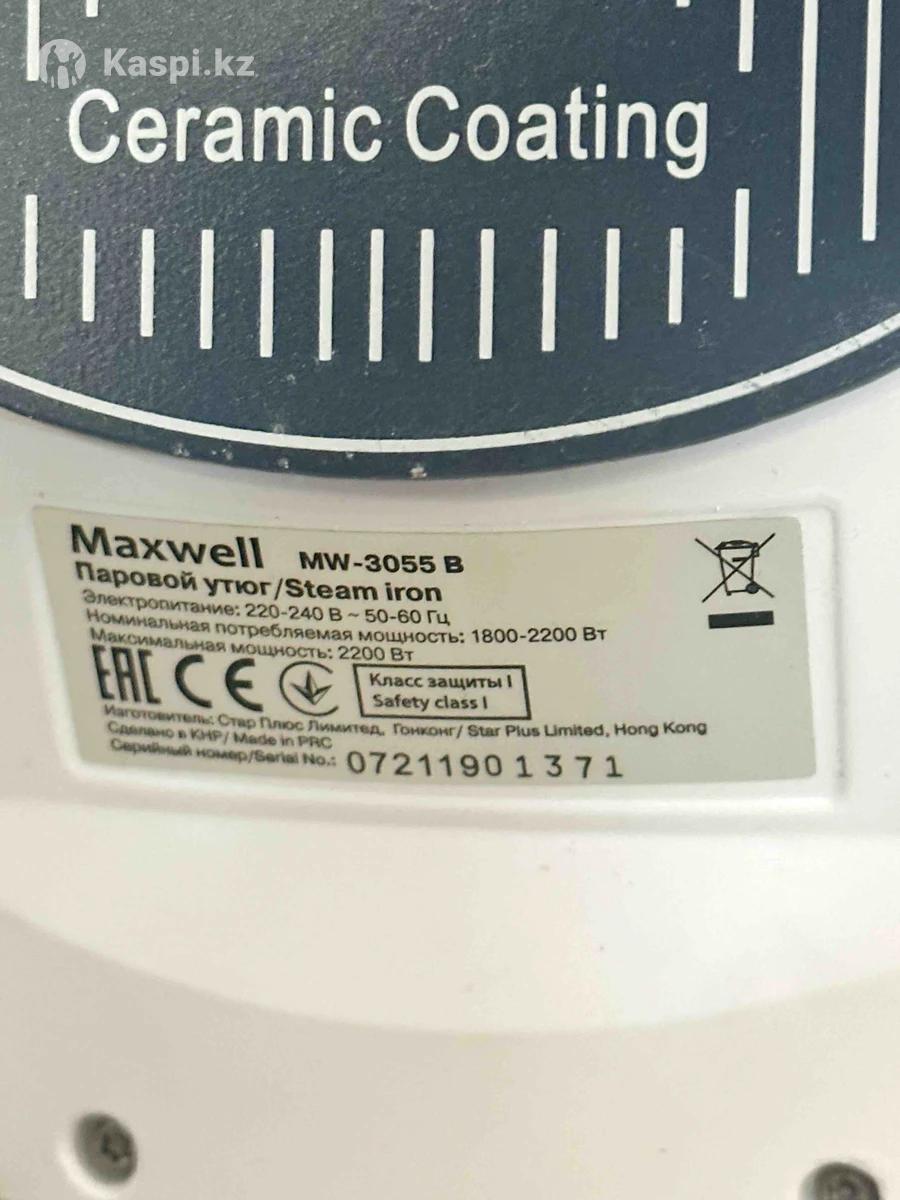 Утюг в хорошем состояний. Паровой утюг - Maxwell. Мощность - 2.200W. Класс защиты 1. Минусы: немного капает вода и на поверхности есть нагар.