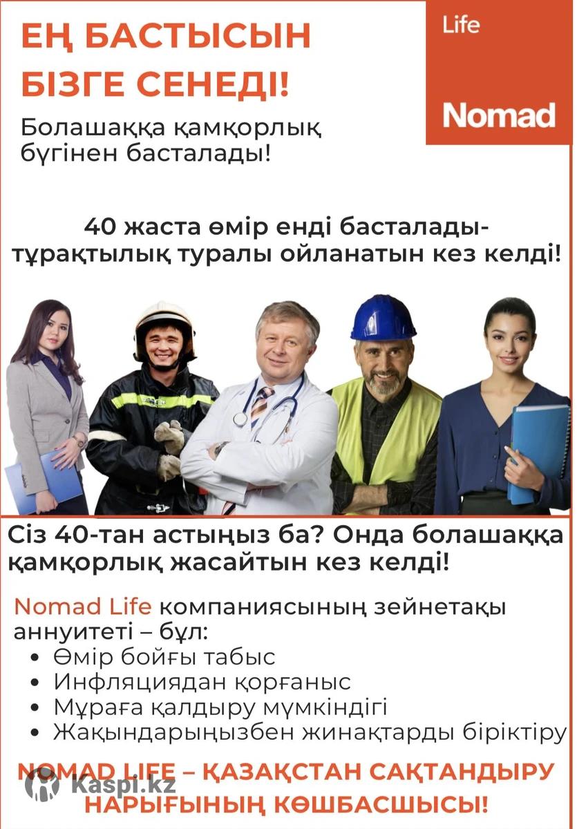 Страховая Компания "Nomad Life" Пенсионный аннуитет. Выплаты с 50 лет Пожизненные пенсионные выплаты Наследование выплат Объединение накоплений Бонус от компании 600 тысяч и выше. Те которые работают на фабрике, заводах очень выгодный вариант! Если получаете за вредность то аннуитет для вас! По всем вопросам вы можете обращаться по следующему контактному номеру Архат
