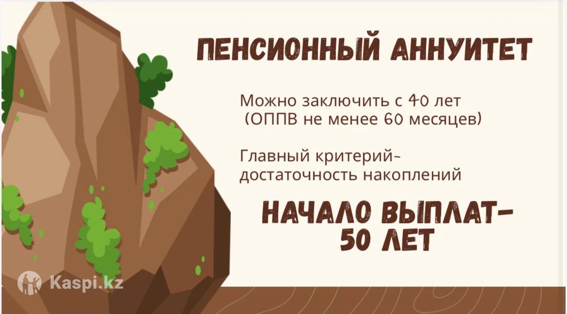 💰 Пенсионный аннуитет — выплаты уже сейчас 🎁 Высокая единовременная выплата (бонус) при оформлении-11 % от суммы ✔ Ранняя пенсия (до 8 лет раньше) ✔ Пожизненные ежемесячные выплаты ✔ Ежегодная индексация-8% ✔ Надёжно и официально Преимущества: • * Гарантированная доходность • Возможность выплат наследникам • Защита Фондом гарантирования Кому подходит: • Женщины и мужчины от 40 лет, мужчины при наличии ОППВ (≥ 60 мес.) • По общей сетке — от 45 лет (без ОППВ) 📩 Бесплатно проверю накопления и сделаю расчёт. Работаю онлайн по всему Казахстану.