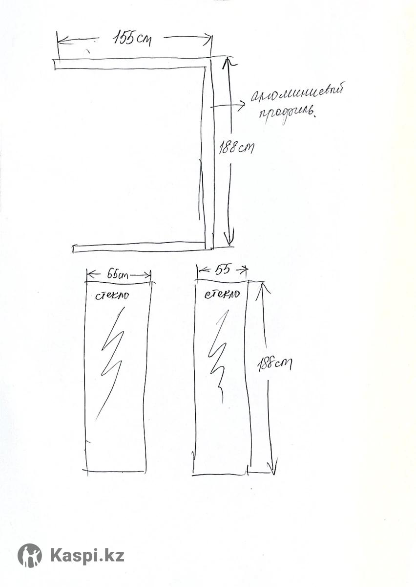 Продам бу стеклянную перегородку для душа в отличном состоянии с алюминиевым профилем. Размеры: профиль 155х188, стекло : первое- 65х188, второе- 55х188, толщина стекла-5 мм. Звонить на номер , или писать в