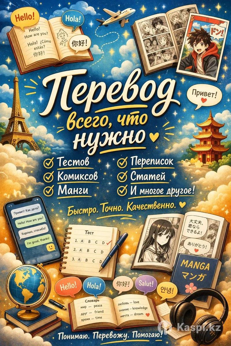 🌍 Перевод всех языков — быстро и качественно! Нужен точный и понятный перевод? Помогу перевести всё, что вам нужно — без ошибок и с сохранением смысла. ✨ Перевожу: • Тексты любой сложности • Комиксы и мангу • Личные переписки • Статьи и документы • Тесты и задания • И многое другое 💬 Гарантирую: • Грамотность и естественное звучание • Сохранение смысла и стиля • Быстрое выполнение • Конфиденциальность 📌 Понимаю. Перевожу. Помогаю. Сделаю так, чтобы вас поняли в любой точке мира!