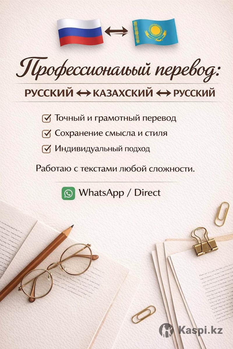 Профессиональный перевод: русский-казахский-русский - Точный и грамотный перевод - Сохранение смысла и стиля - Индивидуальный подход Работаю с текстами любой сложности.