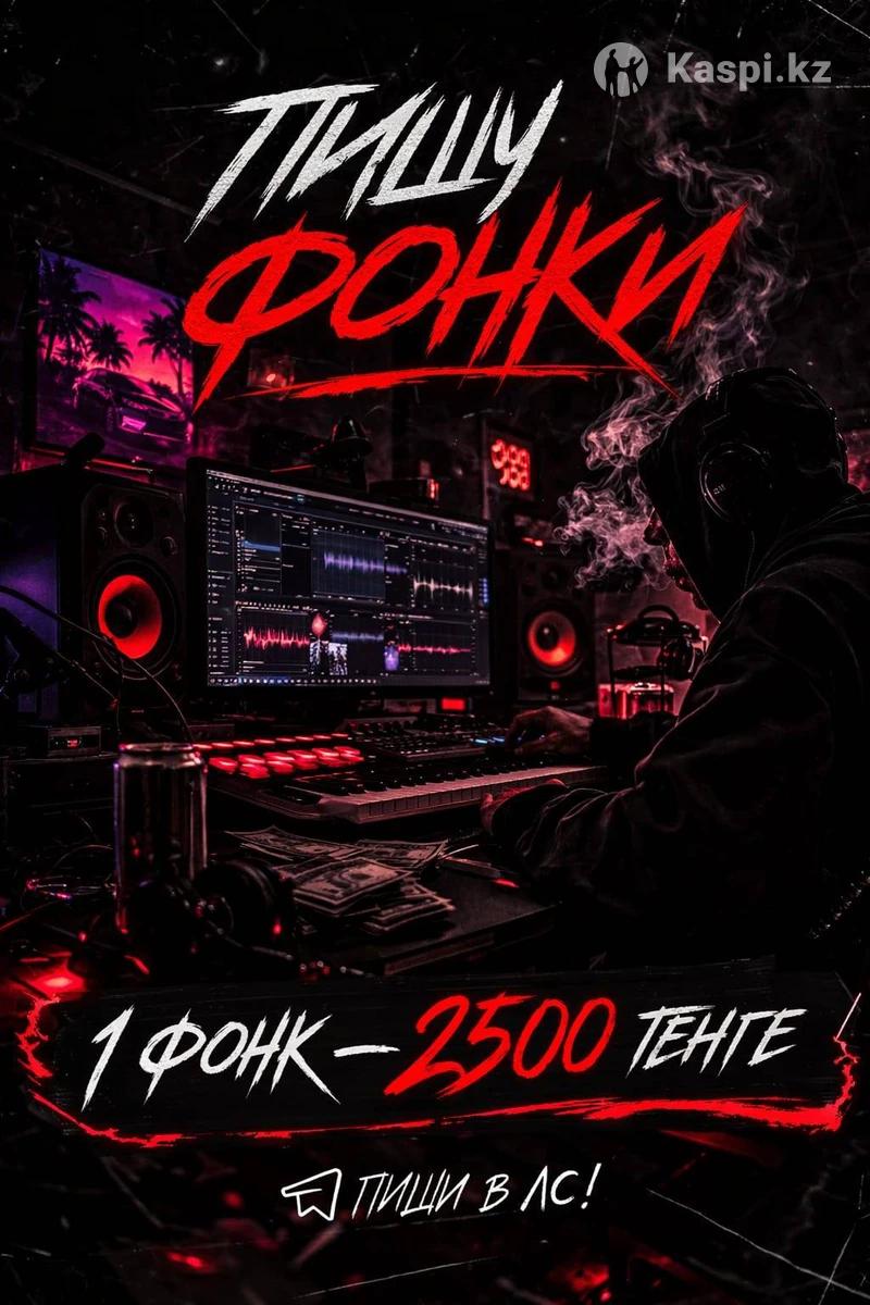 Пишу фанк (phonk) на заказ — 2500тг Сделаю уникальный фанк-трек специально для вас. Подойдёт для TikTok, Instagram, YouTube, игр или личного использования. Музыка будет оригинальная, с атмосферным битом, басом и эффектами в стиле phonk. Что входит: • Полноценный фанк трек • Атмосферный бит и мощный бас • Возможен женский или эффектный голос • Можно сделать под ваш стиль или идею Цена: 2500тг за трек Срок: быстрое выполнение. Пишите в сообщения, обсудим детали и сделаем трек именно под вас.