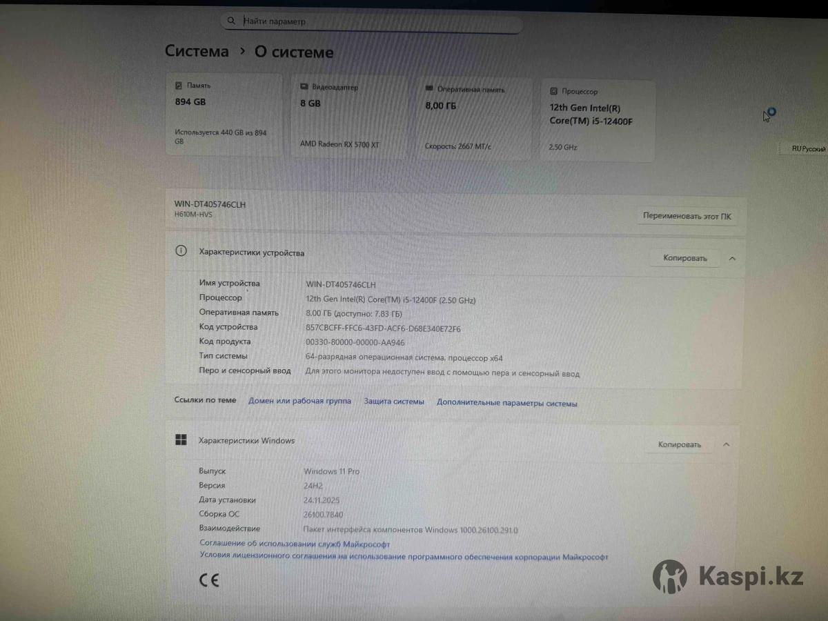 Процессор: 12th Gen Intel(R) Core(TM) i5-12400F (2.50 GHz) Оперативный память: 8,00 ГБ (доступно: 7,83 ГБ) Тип системы: 64-разрядная операционная система, процессор x64 Видеоадаптер AMD Radeon RX 5700 XT Стол рабочий 1400600750мм