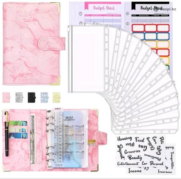 Планер розовый Мрамор, A5 комбинированная Предназначен для организации и отслеживания доходов расходов и целей сбережений. Помогает визуализировать финансовое положение контролировать траты и достигать финансовых целей. Позволяет хранить счета квитанции и финансовые отчеты в одном месте а также отслеживать сроки платежей. 📝 Бюджетный лист 12шт 💵 Карман для денег 12 шт 📑 Лист разделитель 5 шт 🟧 Наклейки 2 виды