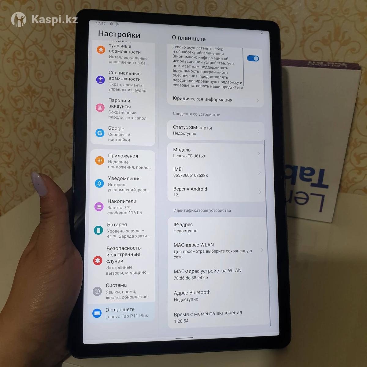 Планшет lenovo tap11 plus 4/128гб 11дюйм Состояние жаксы Почти новый Цена 65мын