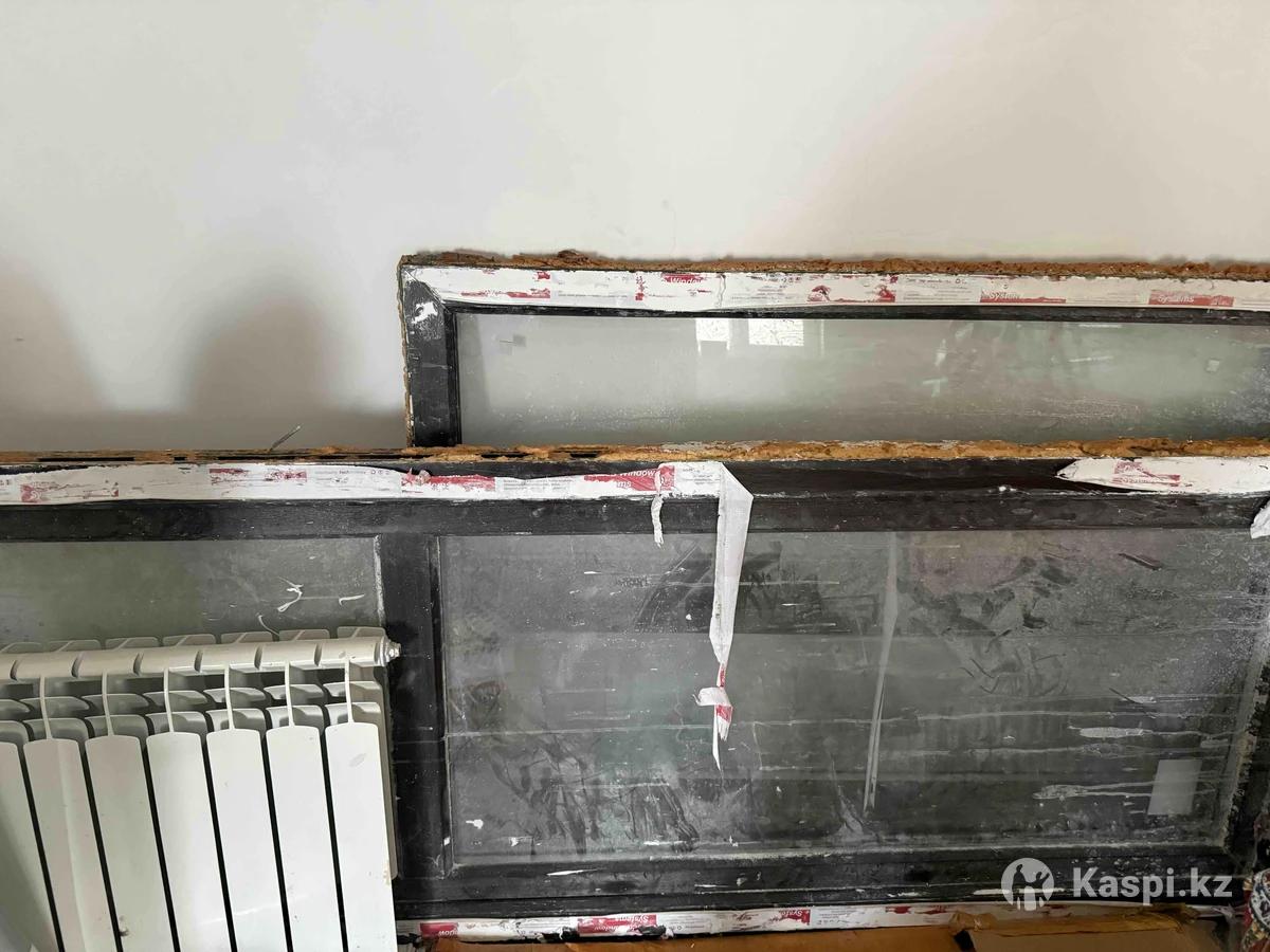 Продается пластик окно с дверью, цвет коричневый.