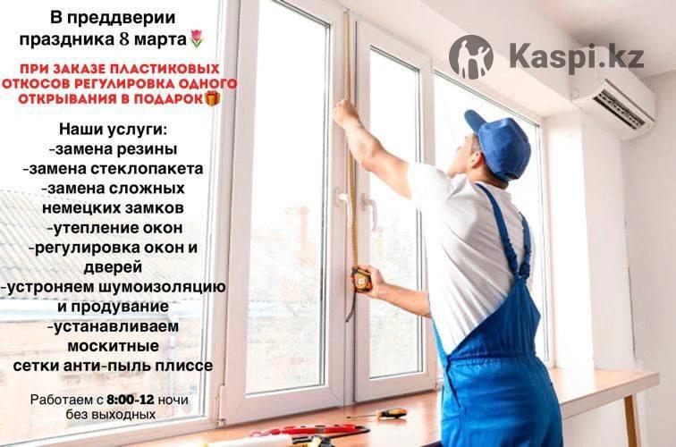 От нас Okna_prof_remont,вы получите не только профессиональные услуги но и качественный сервис! 1-Уборка после нашей работы 2-Пунктуальные 3-Всегда при замере учитываем какой пол,чтоб при работе застелить. Наш опыт более 18 лет позволяет нам сделать любую сложность, поломки окна и двери Пластиковых. 1-Замена с простого открывания на сложное 2-Устранение шумоизоляции и продувания 3-Москитные Сетки-внутренние и наружные 4-Из глухого окна делаем открывания 5-Замена Стеклопакетов 6-Замена Подоконника 7-Ремонт москитных Сеток 8-Регулировка Окон и Дверей Пластиковых 9-Замена Уплотнителя 10-Установка Крабовых Замков Для Простых открывания!!!Подробности по телефону 11-Установка магнитов и ручек курильщиков 12-Замена Ручек 13-Замена Дизайна Ручек и Декор Накладок 14-Делаем Правильный Водоотлив И ещё многое другое Звоните и мы вам поможем! По выходным скидка на Москитную сетку антипыль 15%