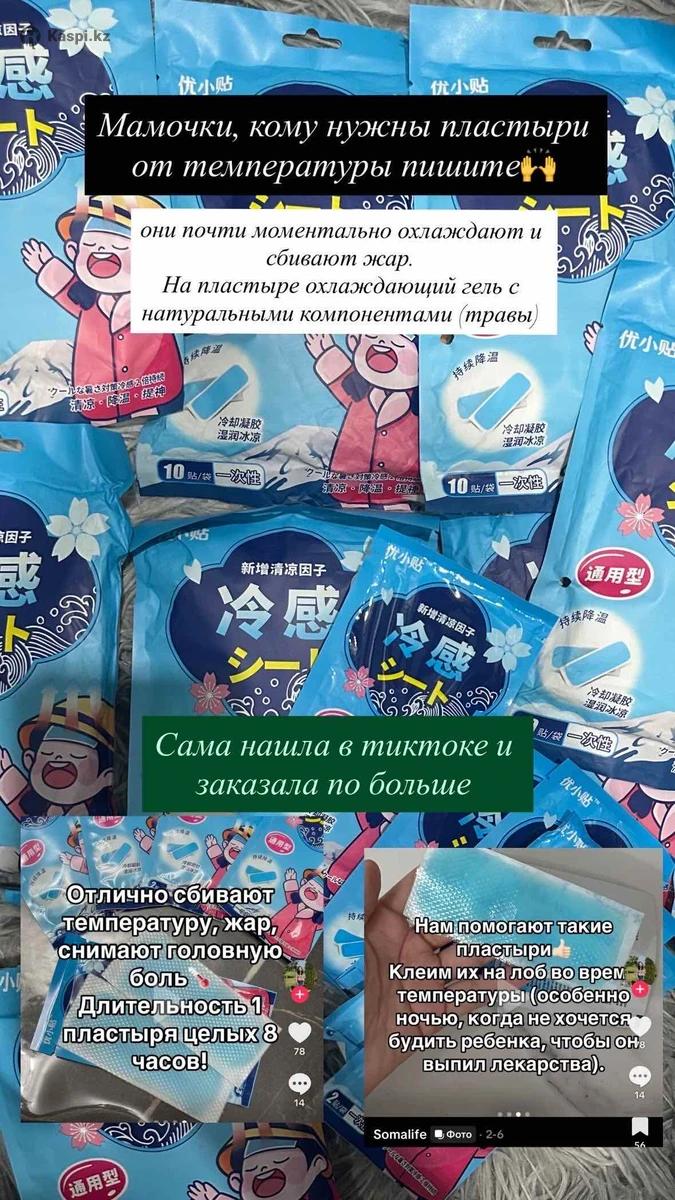 Мамочки, кому нужны пластыри от температуры пишите они почти моментально охлаждают и сбивают жар. На пластырь охлаждающий гель с натуральными компонентами (травы). Отлично сбивают температуру, жар, снимают головную боль Длительность 1 пластыря целых 8 часов! Цена 1500 тенге в пачке 10 штук
