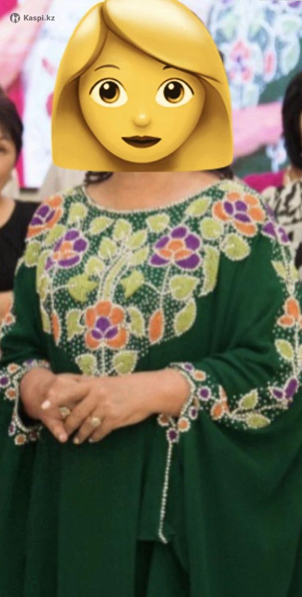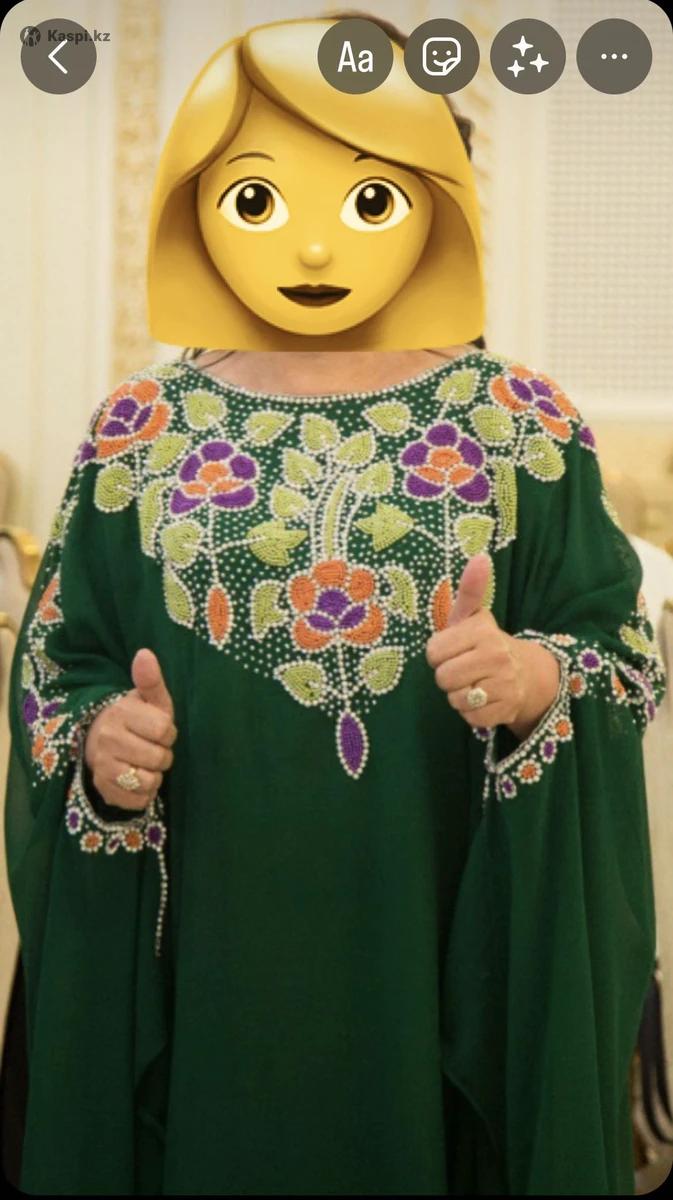 Зеленое платье Абайя (арабский стиль). Надевалось 1 раз на свадьбу. Размер идет 50-54. Длина отлично подойдет на рост 165-170 см (на фото рост женщины 165, каблуки 5 см) Покупали в Адеме (Алматы). Забрать можно с района Алматы арена.