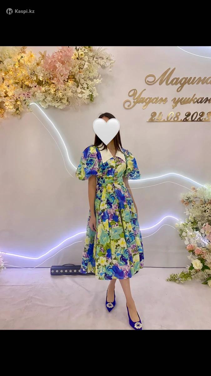 Очень красивое, нарядное платье с цветочным принтом и пышными рукавами. Яркий, запоминающийся образ!