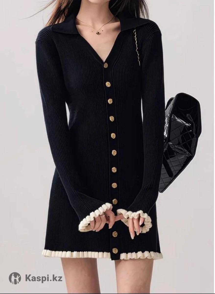 Платье хорошего качества,плотный материал черного цвета,длина платья 75 см
