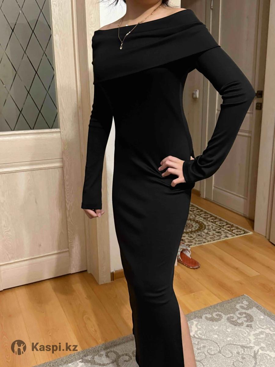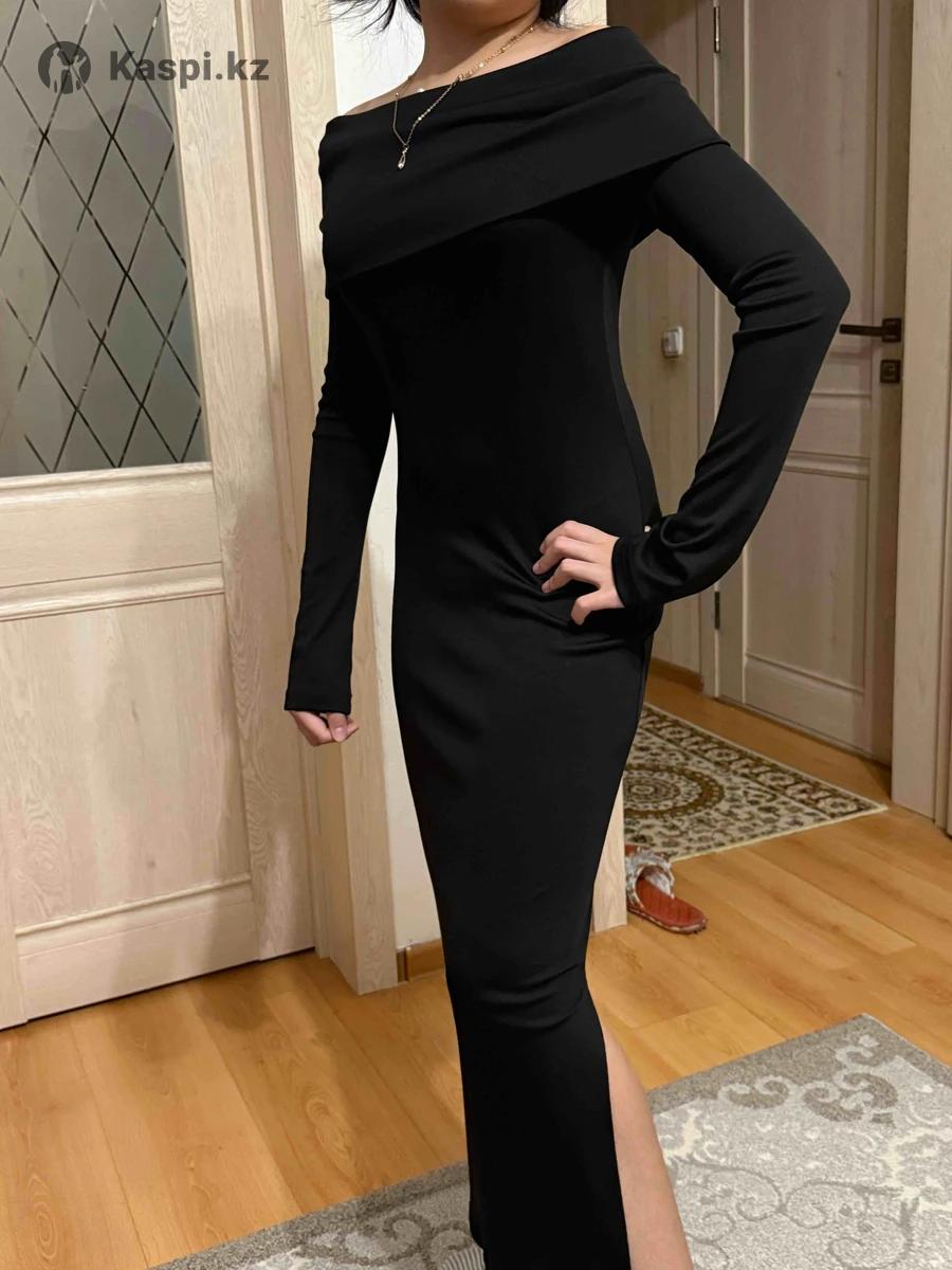 Черное облегающее трикотажное платье на девочку 12-13 лет, коктейльное-вечернее. Подойдет на стройную девушку.