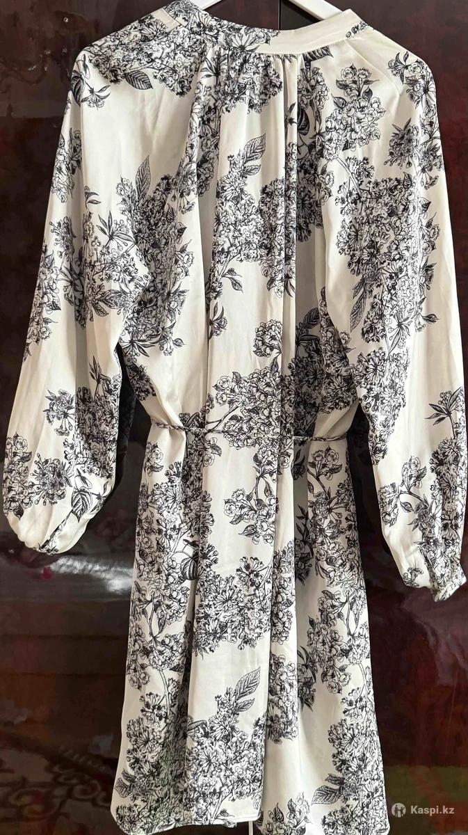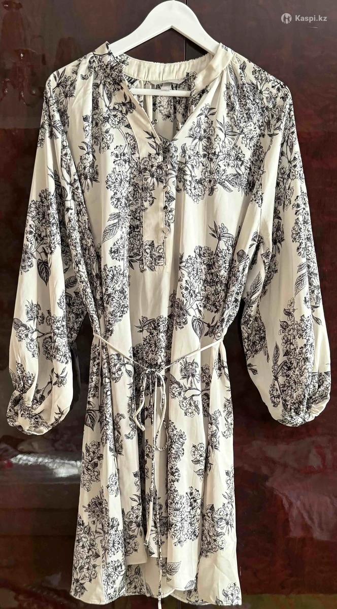 Платье в отличном состоянии, практически не носилось. Только пару раз. Стильное и очень женственное платье, выполненное из приятной ткани. Бежевый оттенок делает образ нежным, а черный рисунок добавляет выразительности и аккуратного акцента.