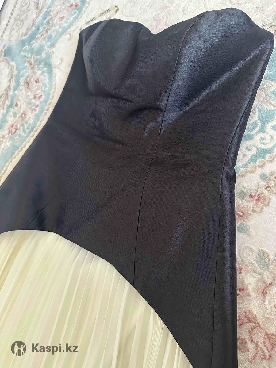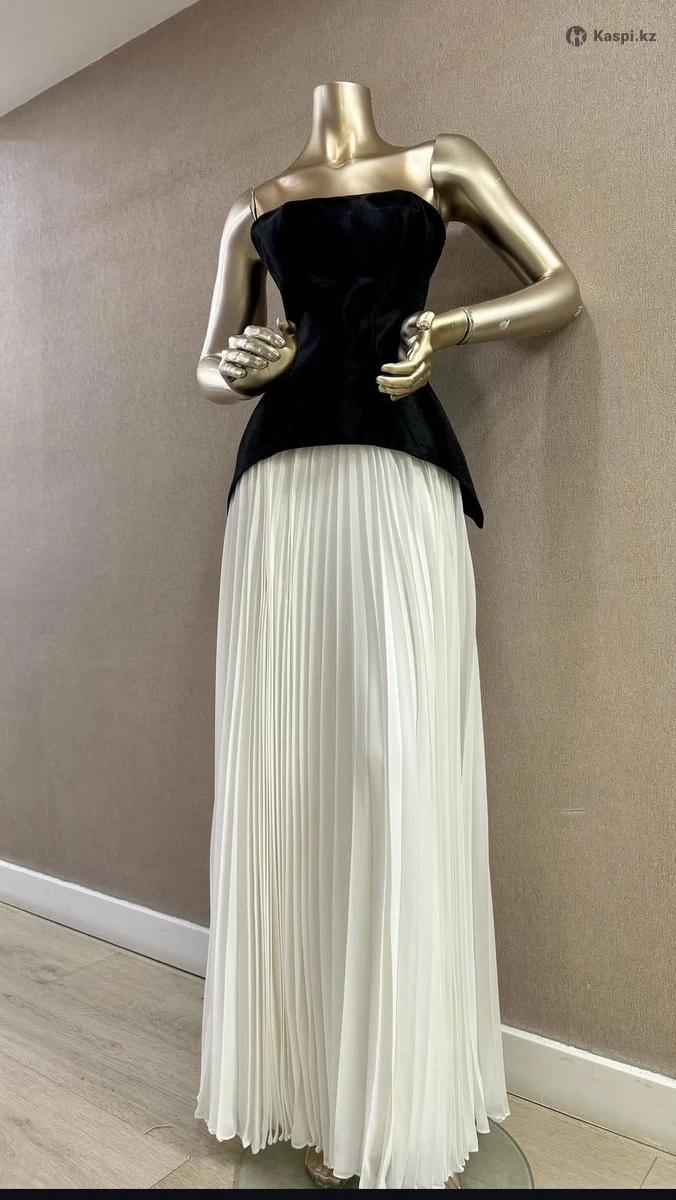 Платье в пол, черный корсет подтягивающее талию и низ плиссе кремового цвета. Покупала в магазине prima la sposa, одевала только 1 раз, продаю за пол цены. У меня размер s-m.