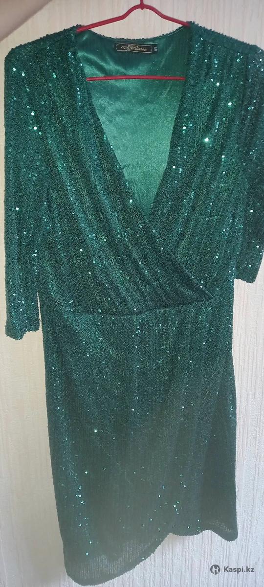 Продается платье с пайетками . Длина при росте 168 см ,до середины колена .Длина рукава 3/4. Есть пояс.
