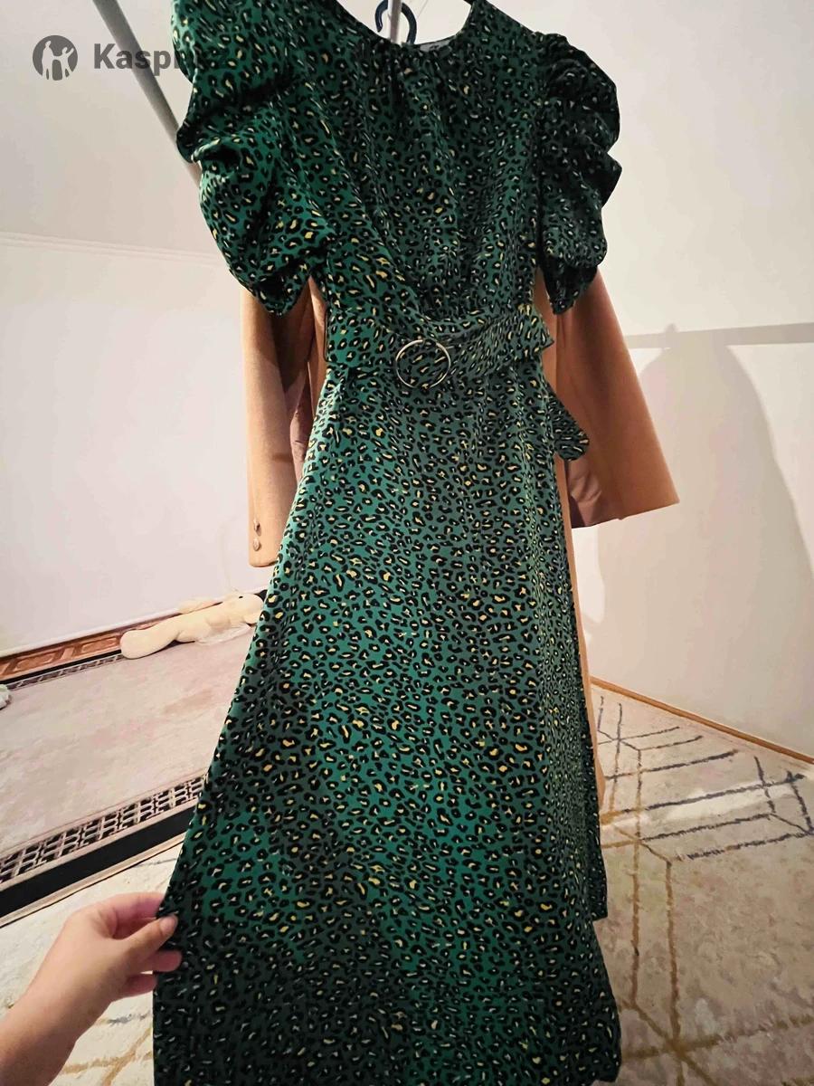 Зеленый леопард рукава фонарик французский длина с ремешком