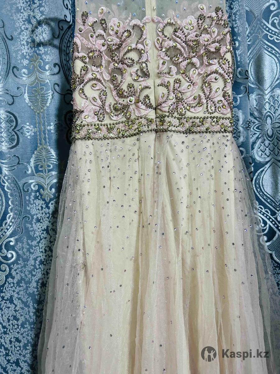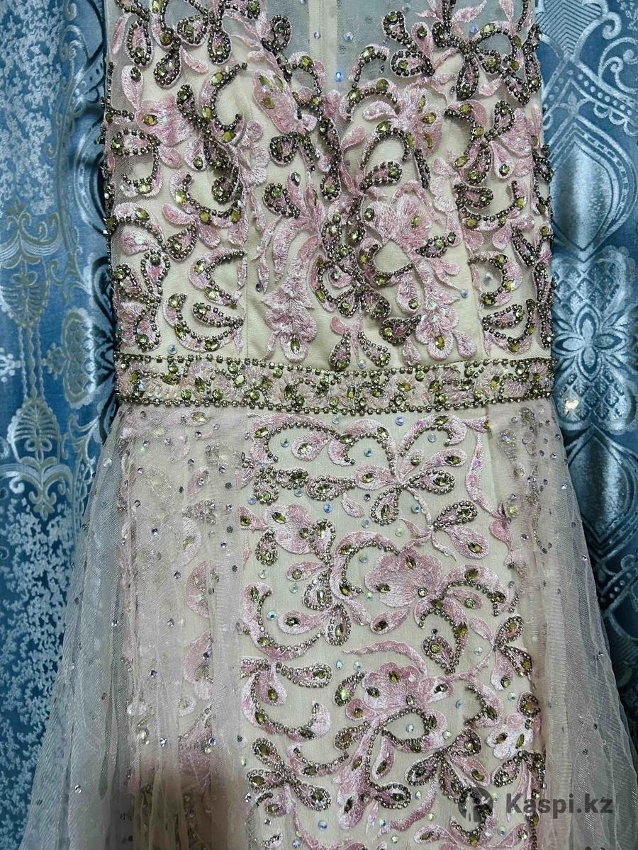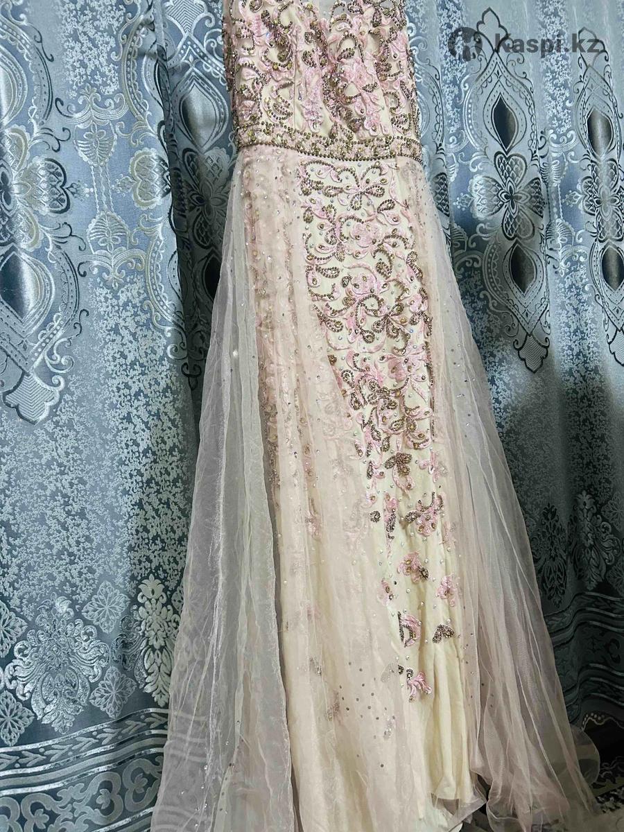 Изысканный крой подчеркивает фигуру, создавая утонченный и женственный образ. Шлейф не съемный, смотрится дорого и эффектно, добавляет образу торжественности. Платье надевали один раз, состояние идеальное, без пятен и дефектов. Отличный вариант для свадьбы, фотосессии, выпускного или вечернего мероприятия.