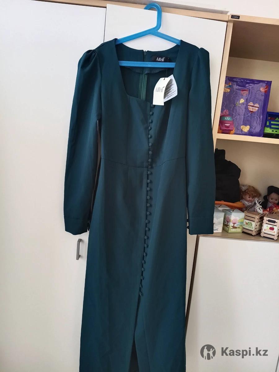 Платье темно зеленое 44 размерПродам платье Alfeli Размер: 46, маломерит — идеально на 44 Состояние: новое, с этикеткой Цена: 45 000 была продам за 10 тыс тг Платье от известной фирмы Alfeli, аккуратное, однотонное, отлично сидит. Покупала себе, но стало мало. Нигде не носилось, дефектов нет единственное пуговицы нет одной можно найти купить Купите — не пожалеете. Пишите / звоните. Живу в районе Евразии за султанимиксом куйши Дина 4