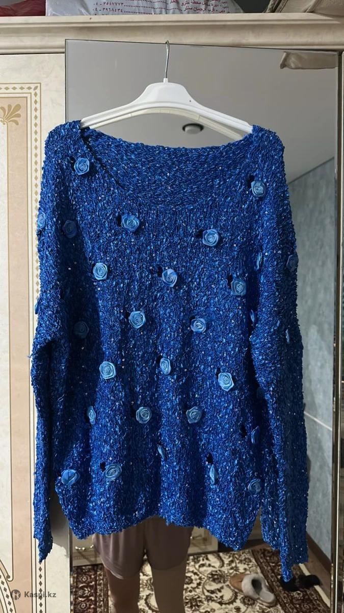 Синяя вязанная с блестками