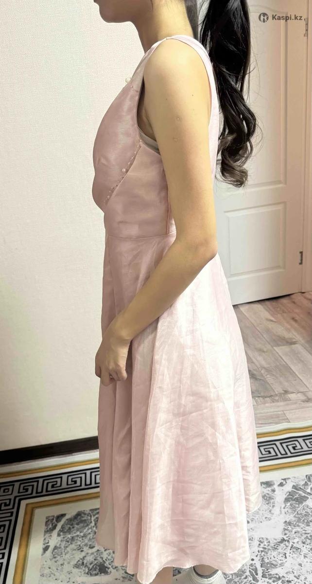 Размер Xl ,яғни 48-50 размер‼️ Әдемі, нәзік қызғылт түсті көйлек. Көйлек жеңсіз, V-тәрізді ойықты, үстіңгі бөлігі қапсырма (иықтан қиғаш қиылған) үлгіде тігілген. Бел тұсы айқындалған, ұсақ інжу-моншақтармен әсем безендірілген, бұл көйлекке сән мен нәзіктік береді. Төменгі бөлігі кең пішілген, жұмсақ қатпарлы, қозғалысқа жеңіл әрі әсем көрінеді.