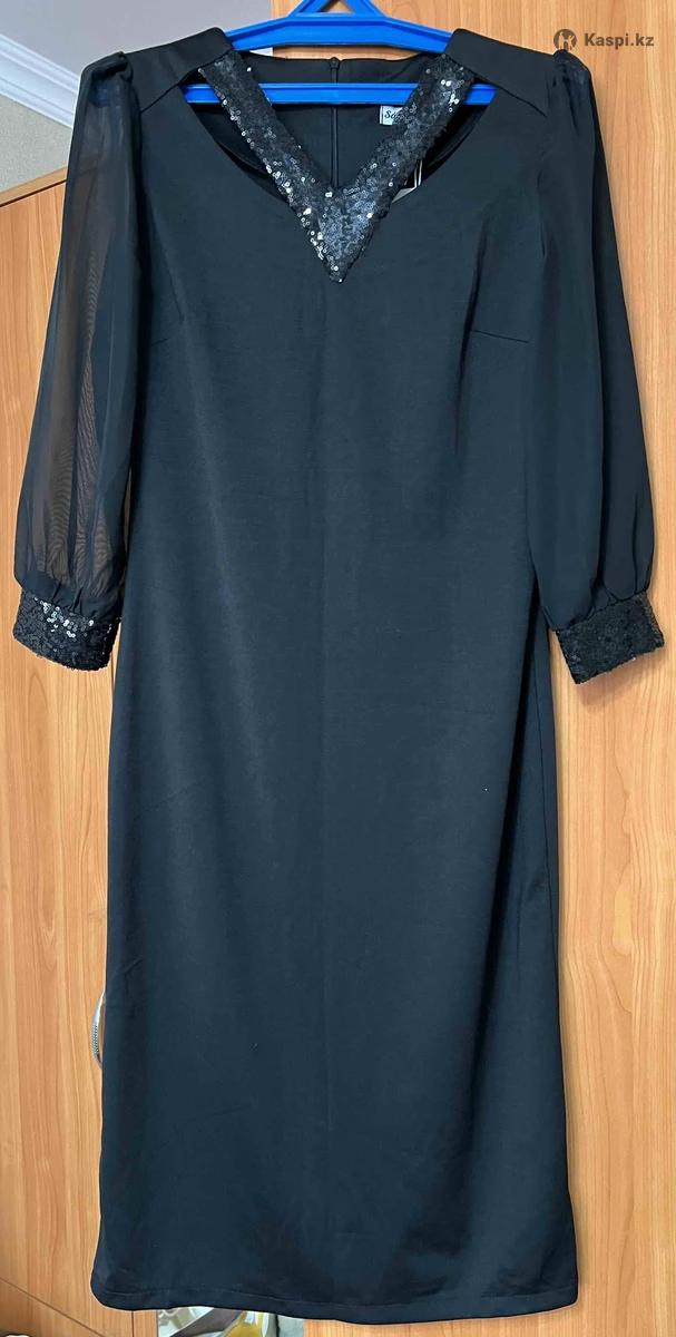 Черное платье с пайетками. НОВОЕ. Размер 48.