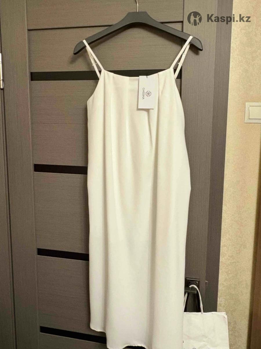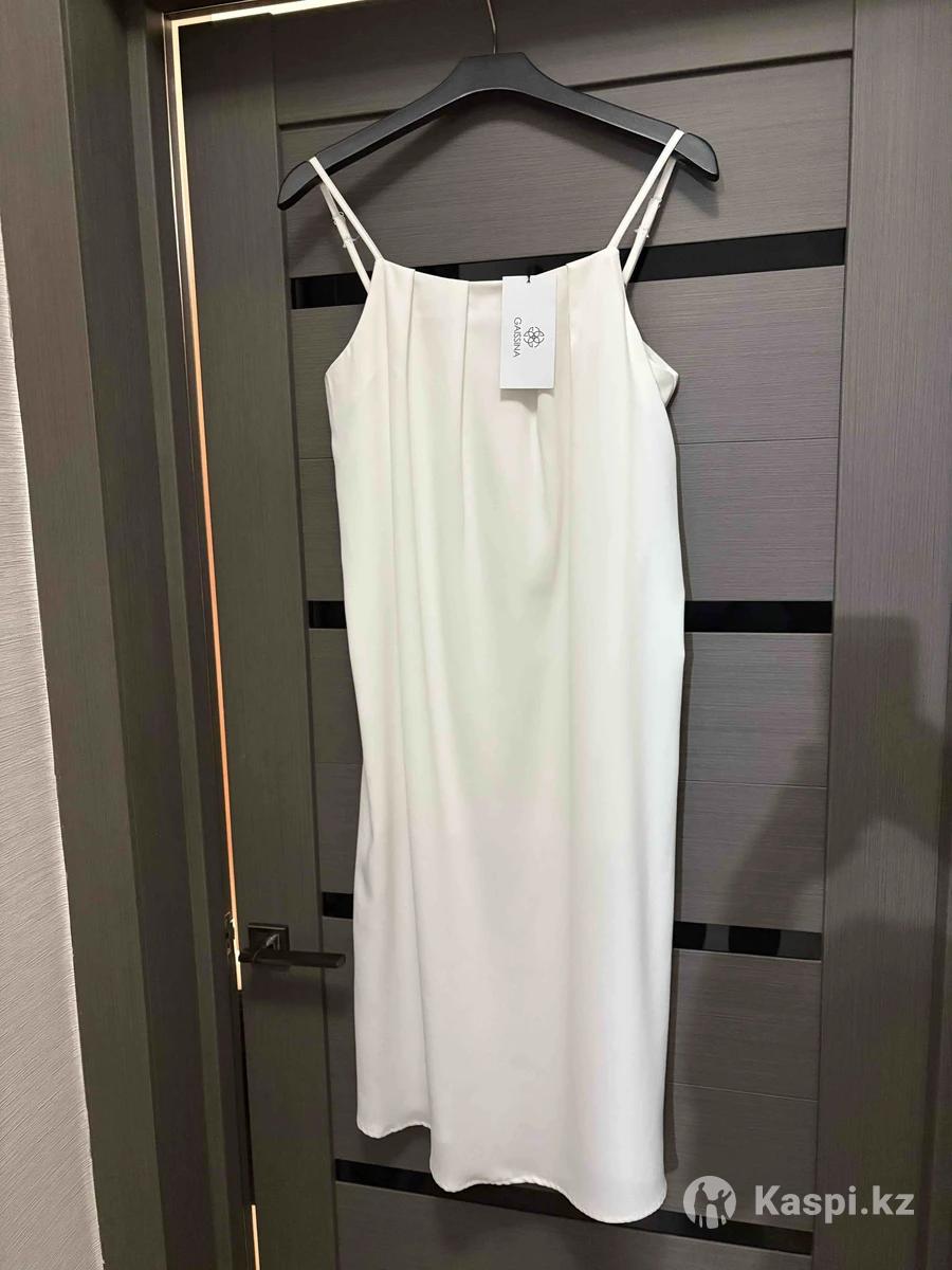 Платье белое, отличного качества. Абсолютно новое. Можно носить и пир и в мир. И с пиджачком и просто само платье будет выглядеть шикарно. Размер стандарт от 42 до 46 подойдет