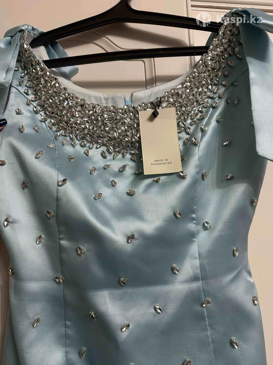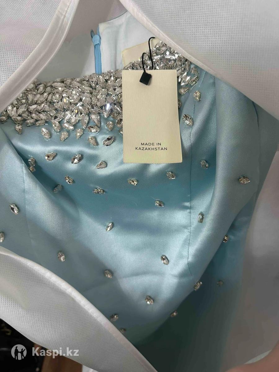 Нежно голубое вечернее платье размер Л заказала по ошибке ,немного ушивала по фигуре Подойдет на М размер Платье в идеальном состоянии, надевала всего 1 раз. Ткань плотная, блестящая, красиво садится и подчеркивает силуэт. Декор из камней смотрится богато и нежно.