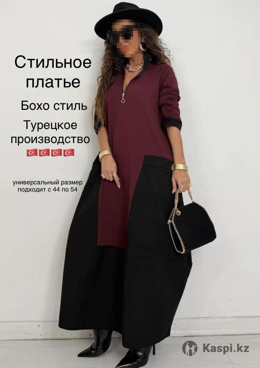 Платье стильное черного цвета (не бордовое), размер стандарт от 44 до 54, трикотаж, качество отличное, 16500тг