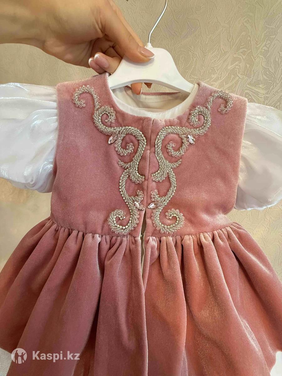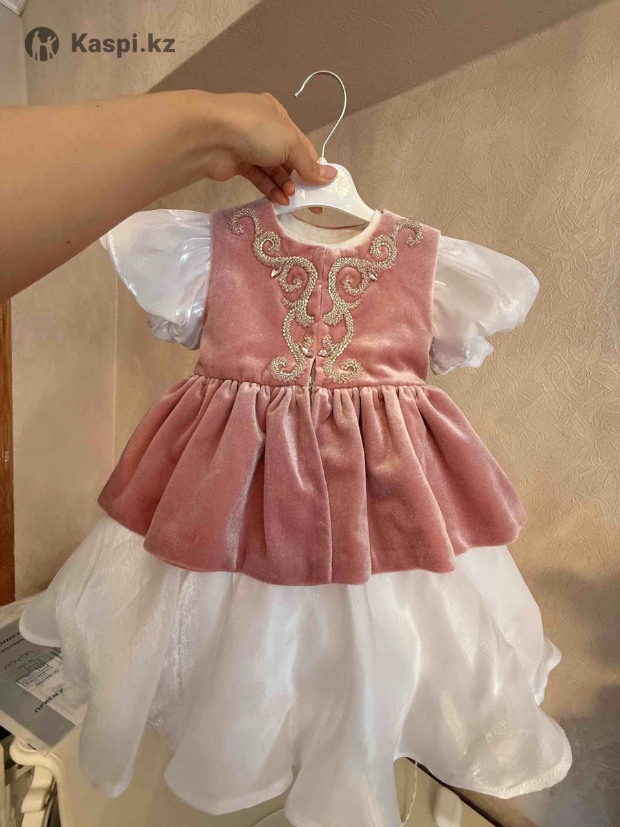 Красивое платье на тусау кесер. Все ручной работы, вышивка узоров из бисера. Надевалось один раз на мероприятие. Состояние идеальное. Идет в комплекте с такия и пинетками. Сшито на заказ по параметрам: Обхват груди - 50 Обхват талии - 52 Длина спины до талии - 19 Длина юбки от талии - 30 Длина стопы - 13,5 На рост: 80-86 Покупала весь комплект за 63тыс тенге, отдам за 30тыс тенге