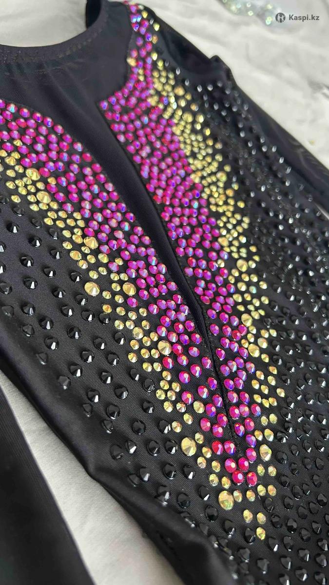 Новый сшитый платье - купальник для фигурного катания. Размер 115-120. Стразы АВ. Юбка солнце трапеция.
