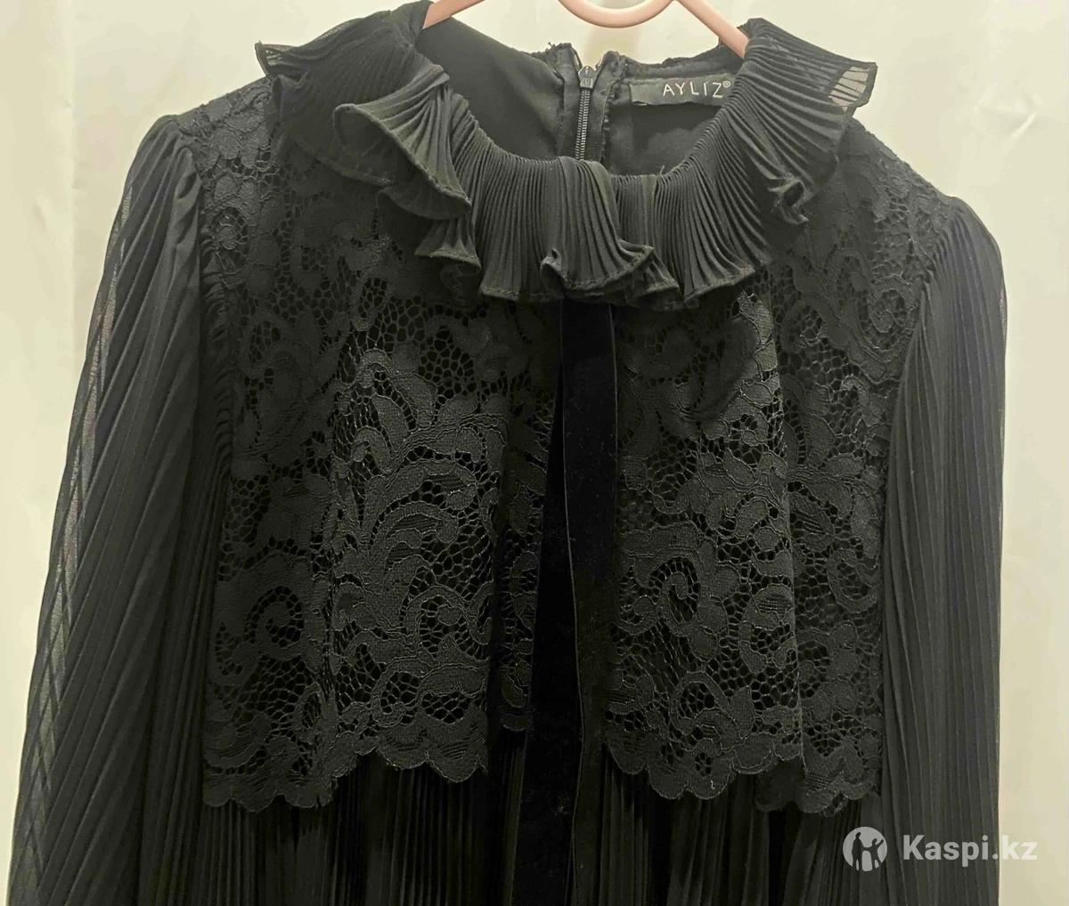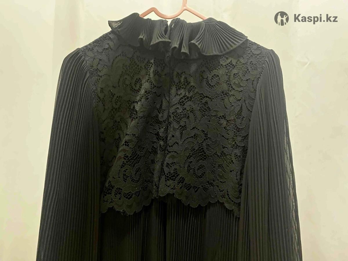Платье черное, кружево сверху и объемные рукава. На рост 165-170, носили один раз, купили в итальянском магазине, хорошего качества