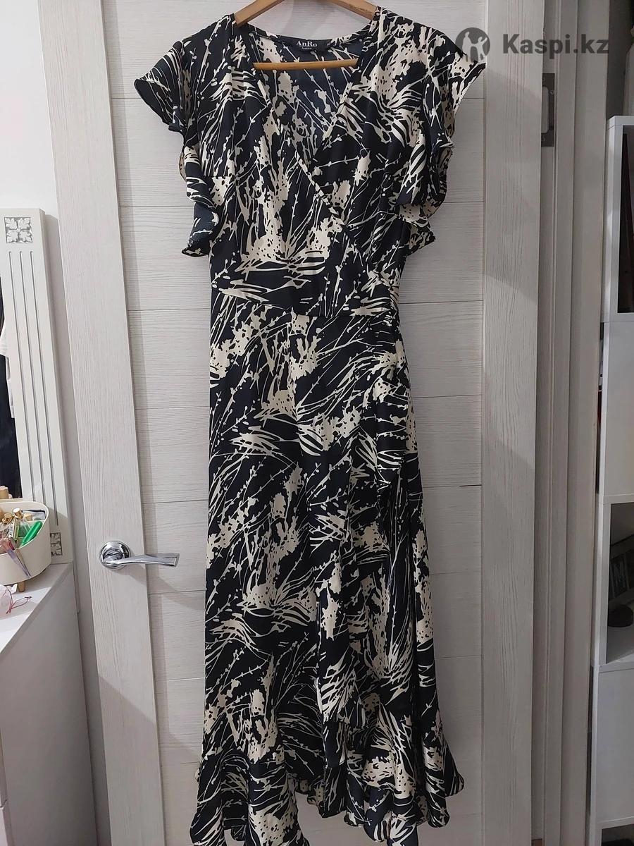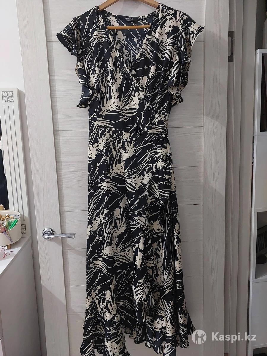 Платье-халат, на запах. Длина макси, подол на воланах. Материал - шелк.