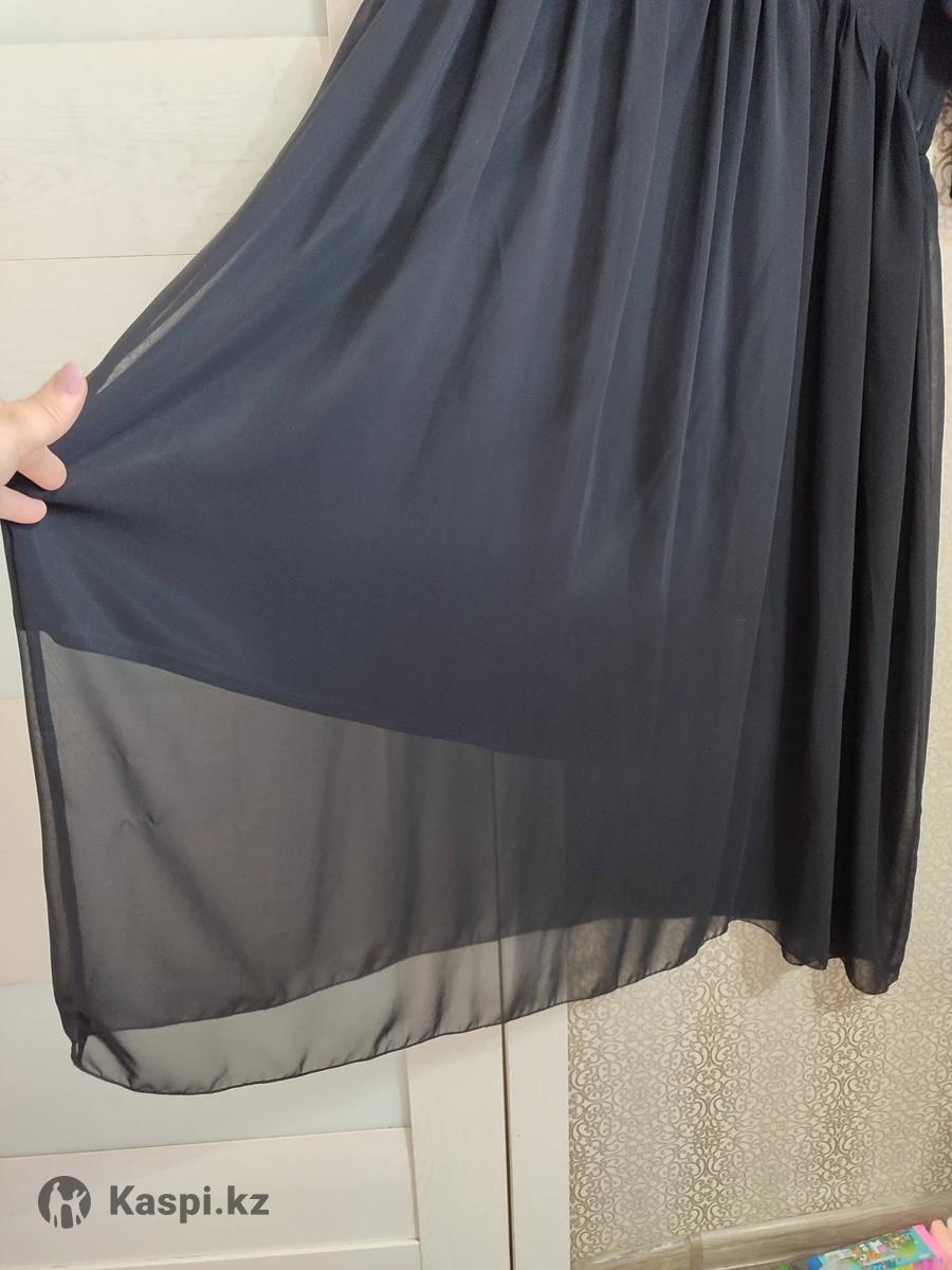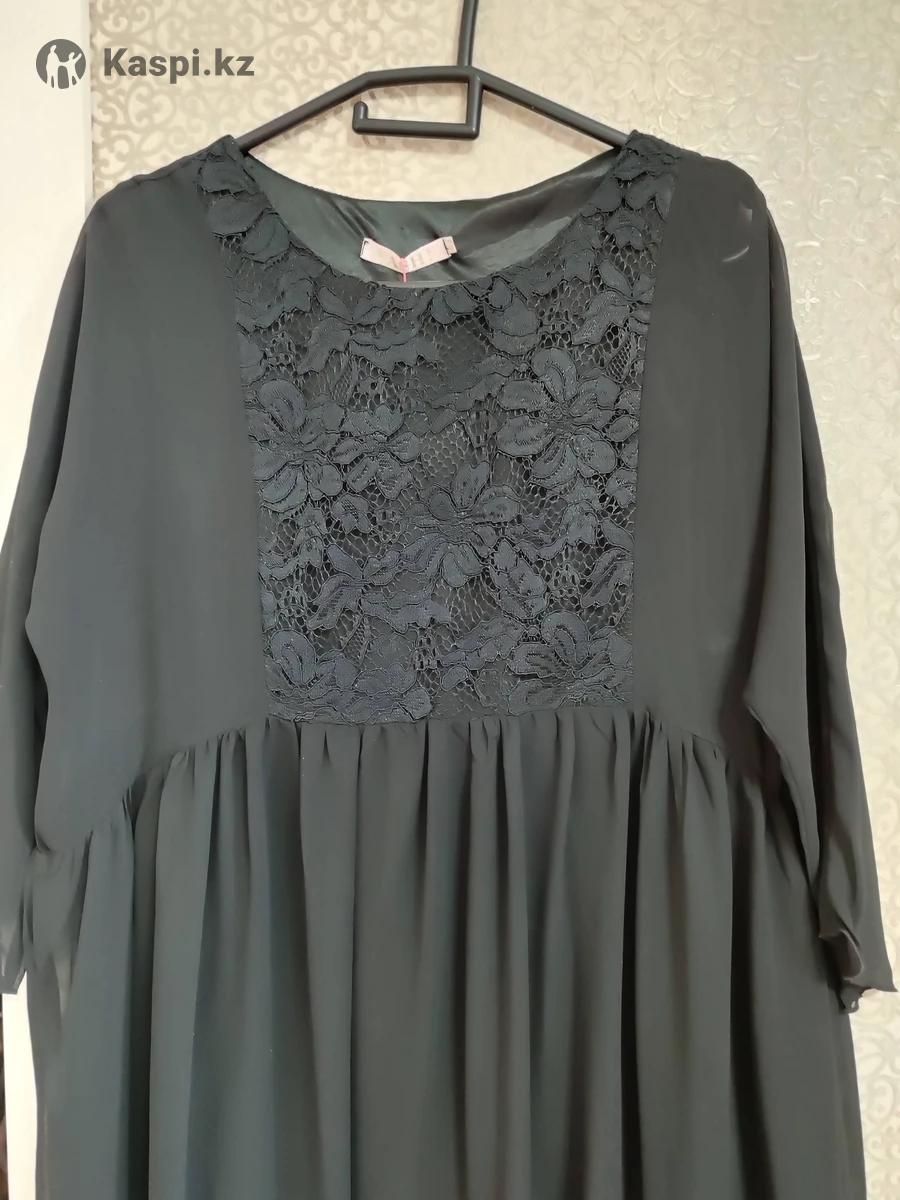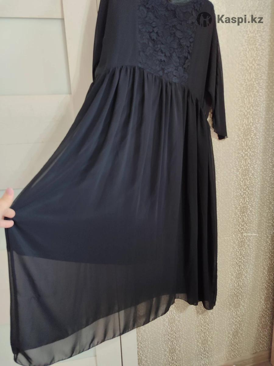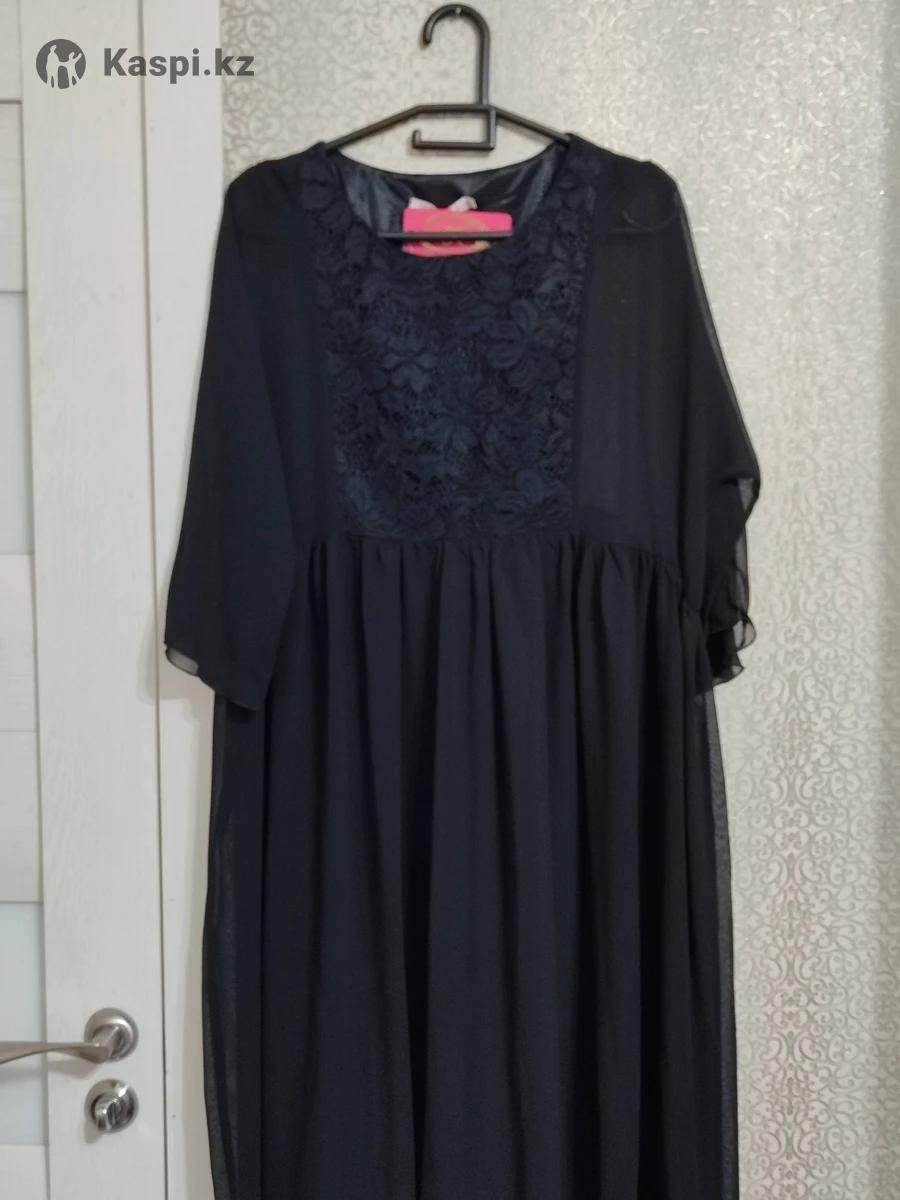 Платье черное, вечернее, размер 50-52. Производство Россия, фирма "VASHE", новое, с этикеткой, на этикетке 52 размер написан. На груди платье гипюровое, рукава капроновые, от пояса капроновые, длинное. Внизу подклад по колено. До колена платье не просвечивает, от колен до низа просвечивает, т к. нижняя часть платья капроновая.