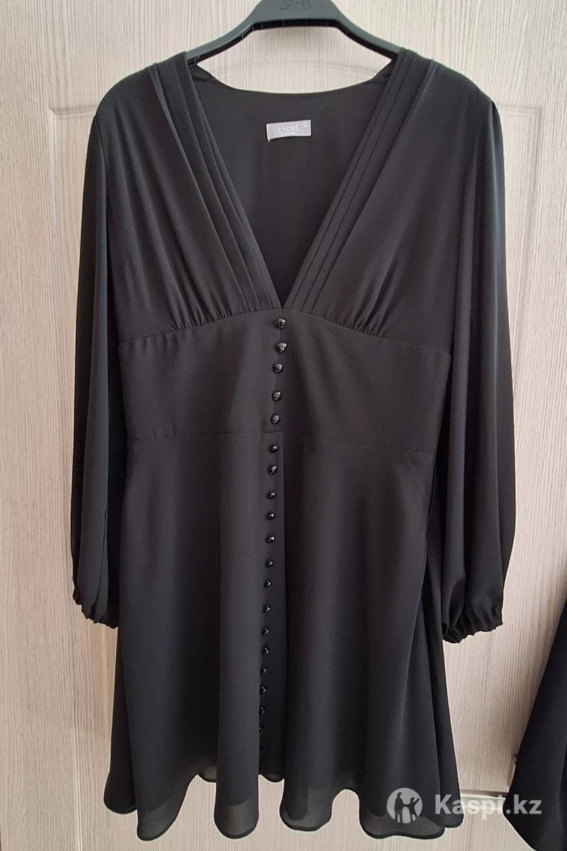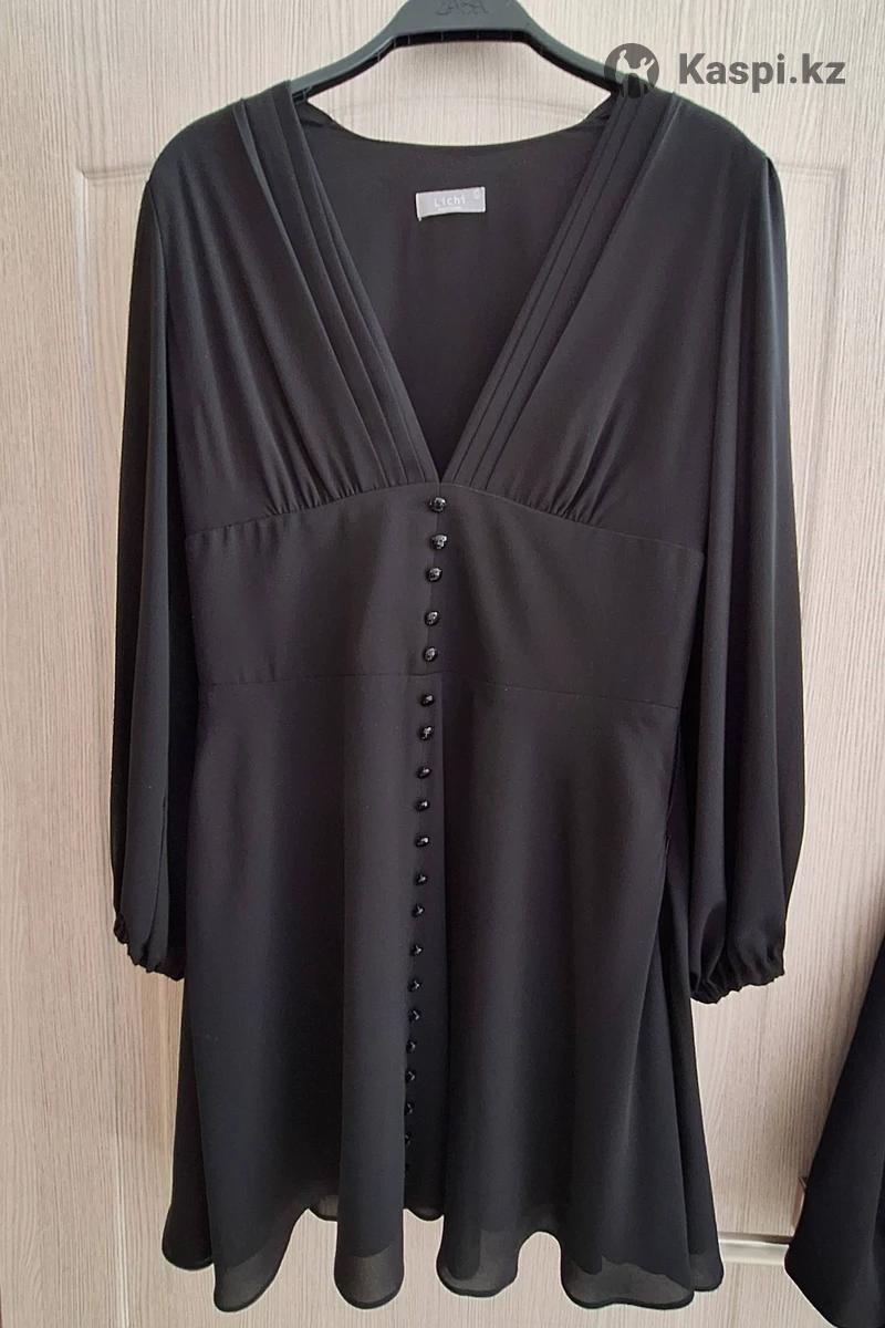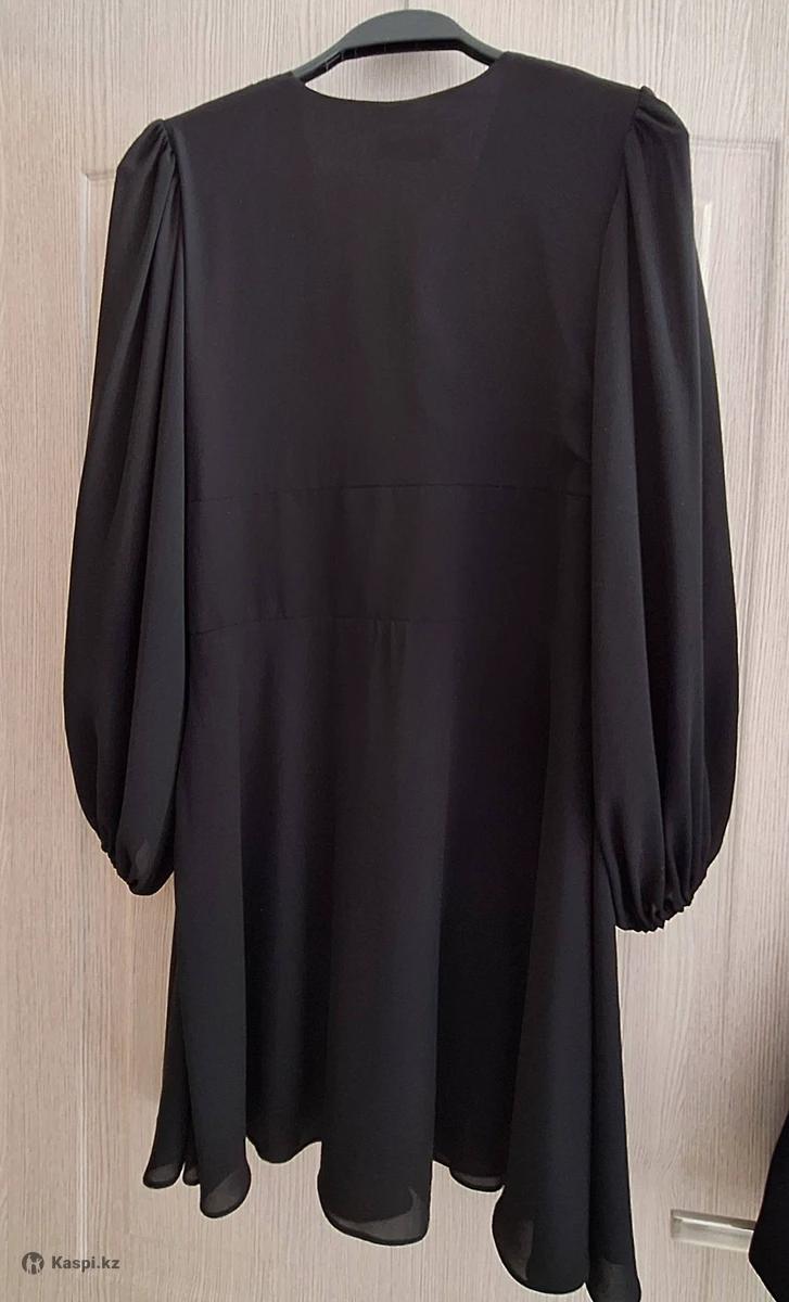 Платье чёрное На этикетке размер L Подходит на 44-46р Из качественного шифона С подкладом Длинные шифоновые рукава Глубокий вырез , можно уменьшить Одето максимум раз 5